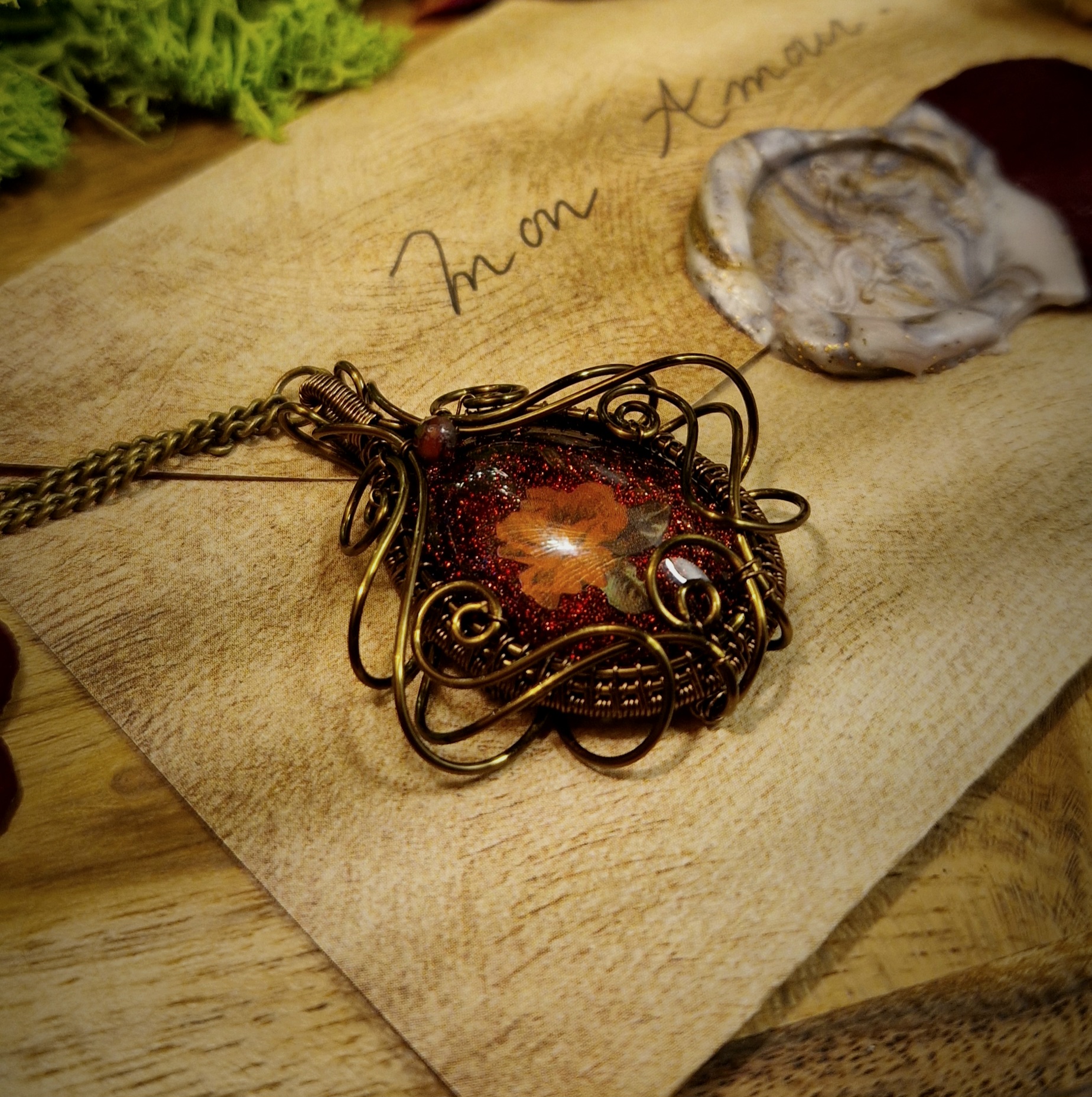 Laissez-vous envoûter par l’éclat profond de cette amulette aux reflets rouges scintillants, porteuse d’une mystérieuse prophétie…