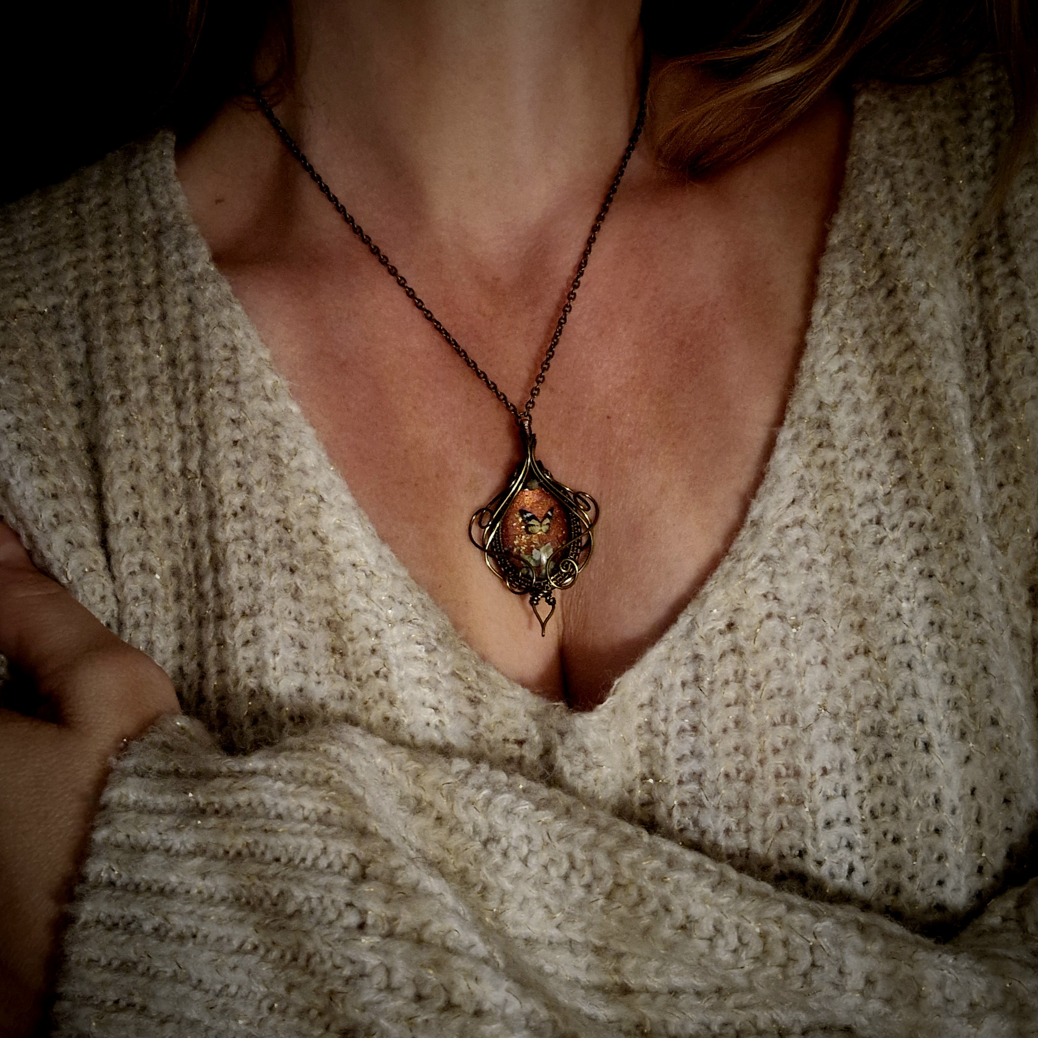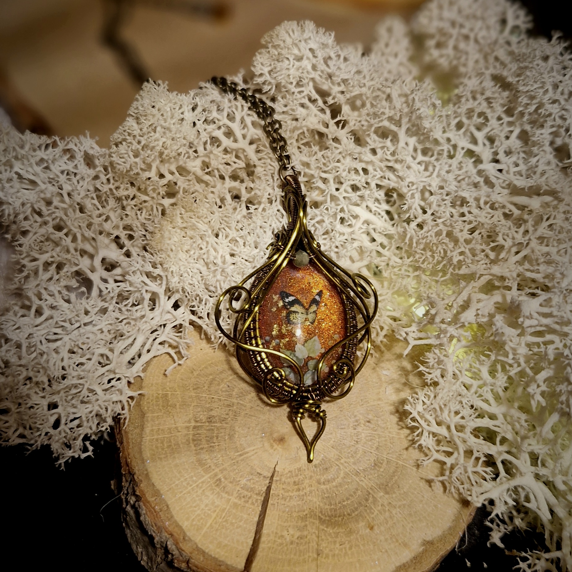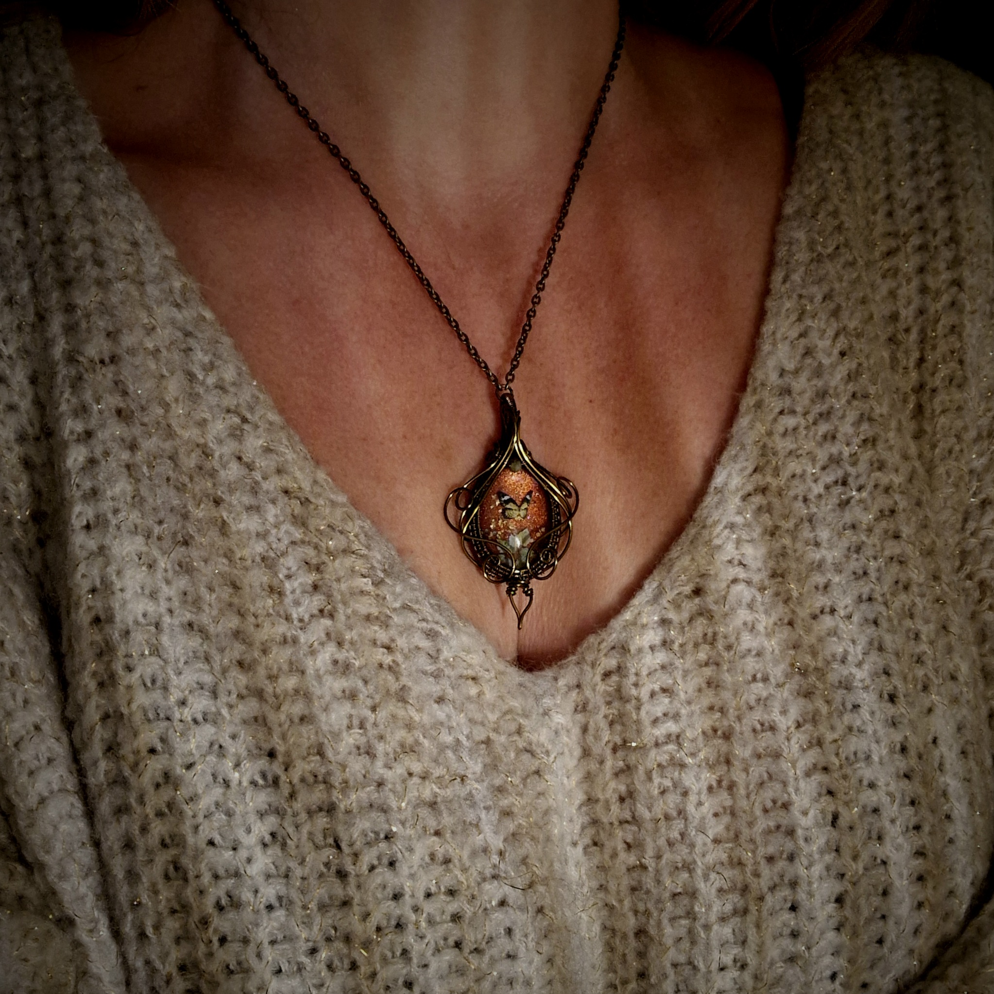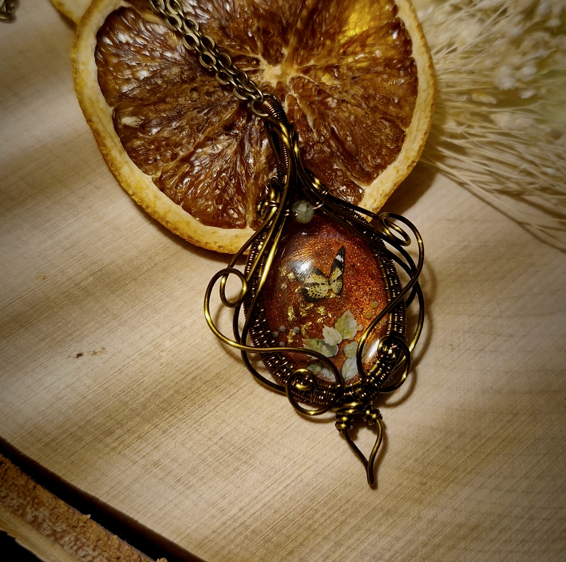 Parez-vous de magie avec ce pendentif fantaisie de haute qualité aux décors oniriques. Il vous dévoile un monde secret où papillons et fleurs dansent ensemble sous les derniers rayons dorés de la saison. Cette amulette vous ouvre les portes d’un automne enchanteur, où chaque instant sera une nouvelle occasion de rêver…