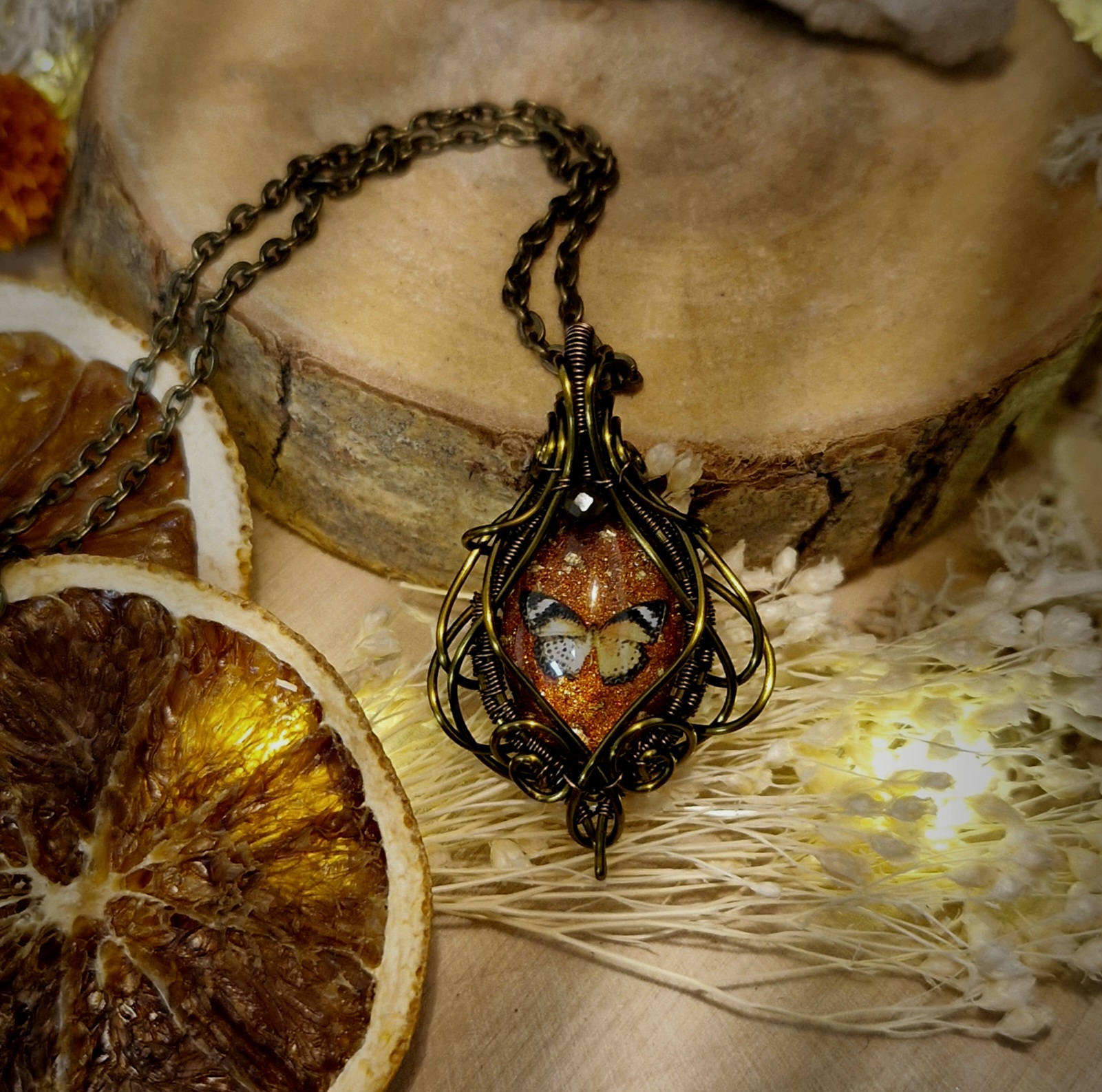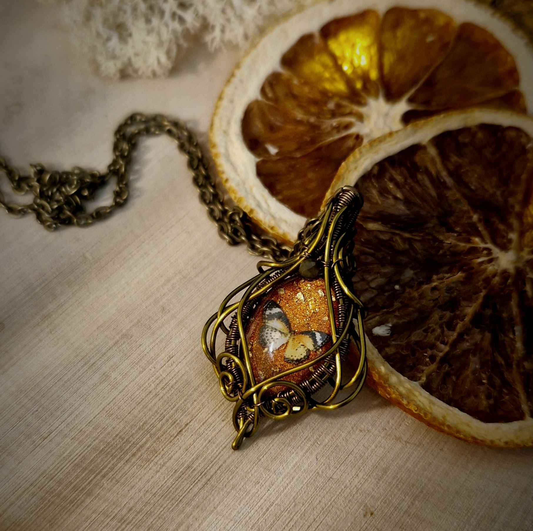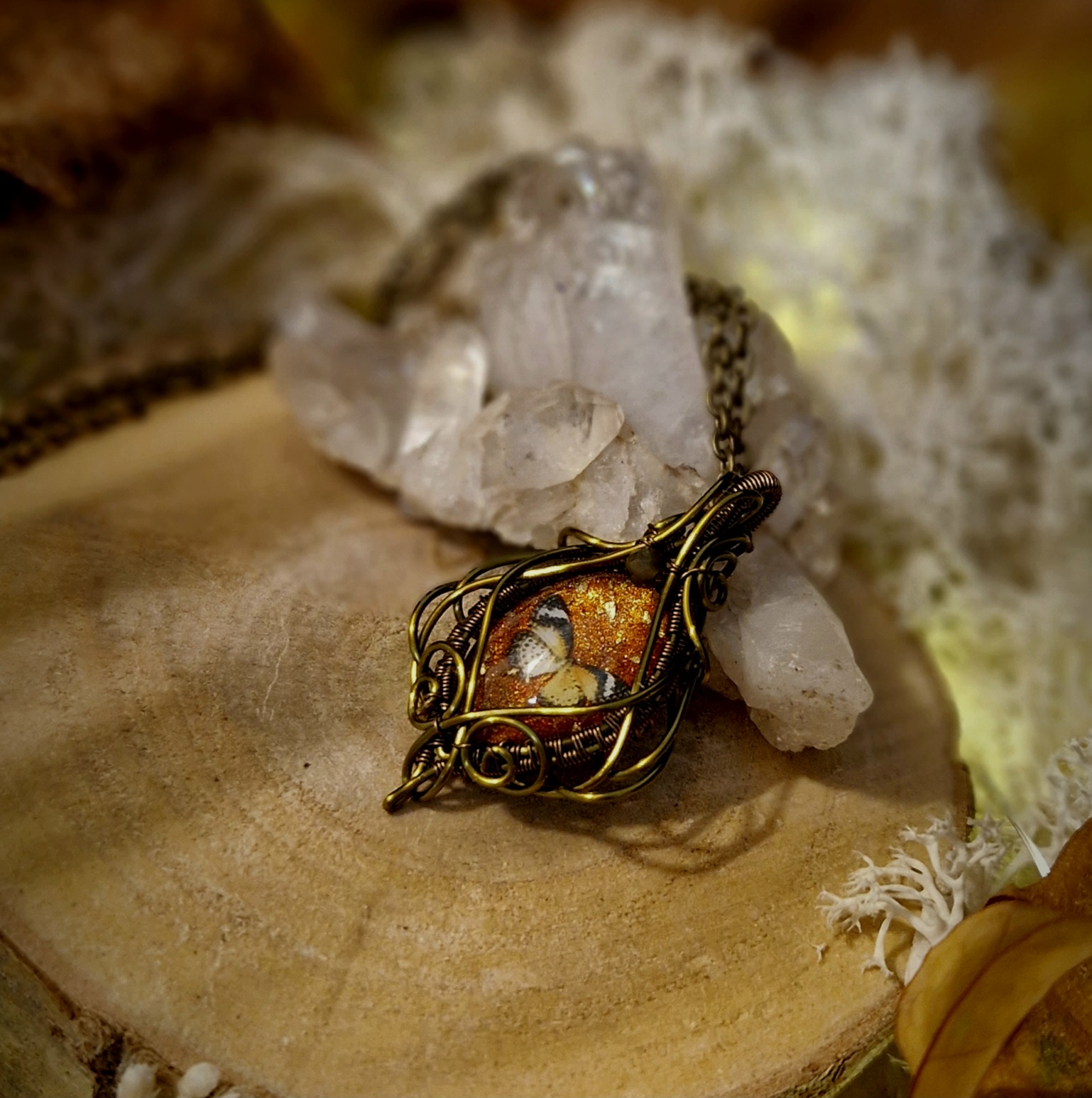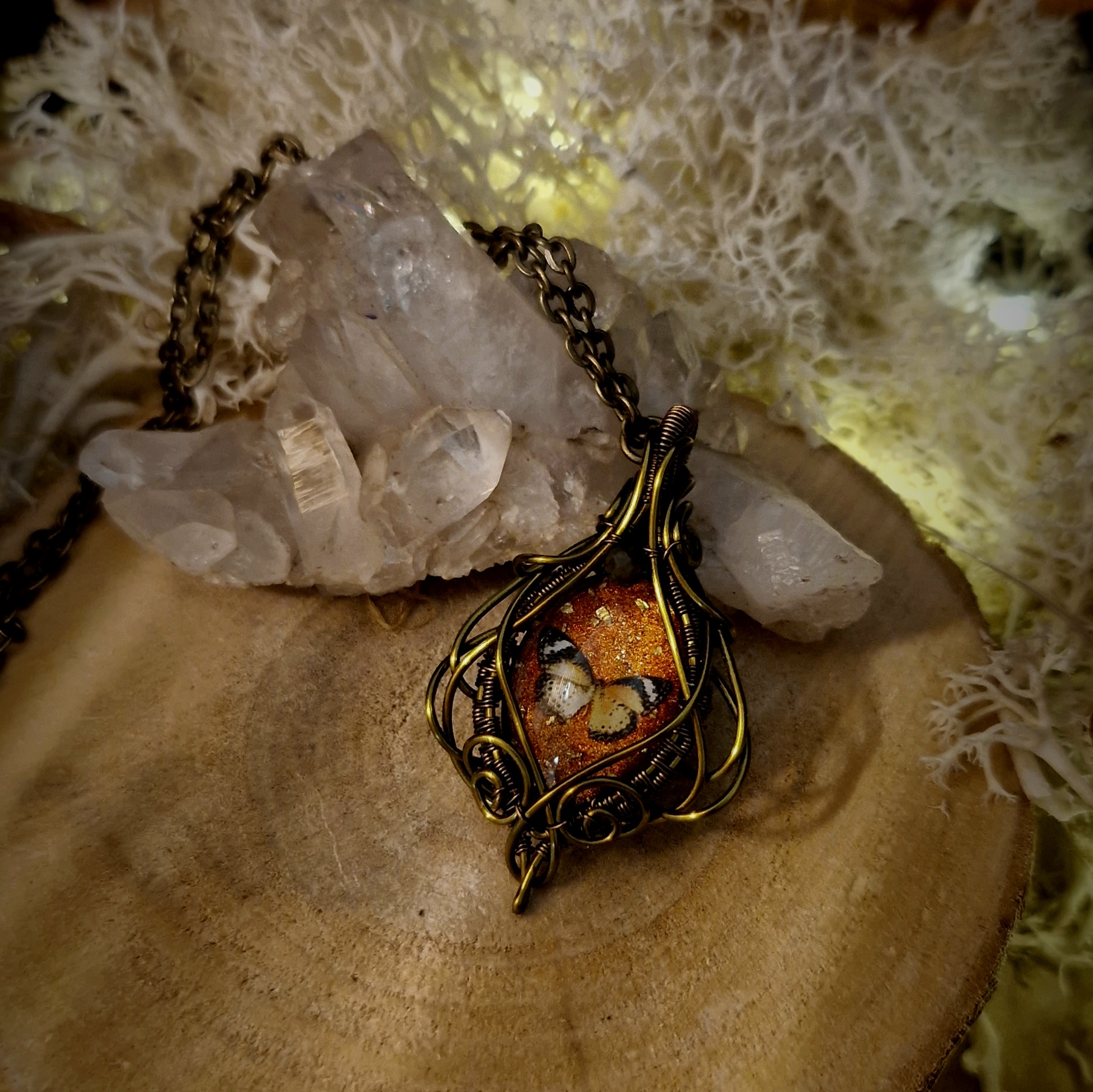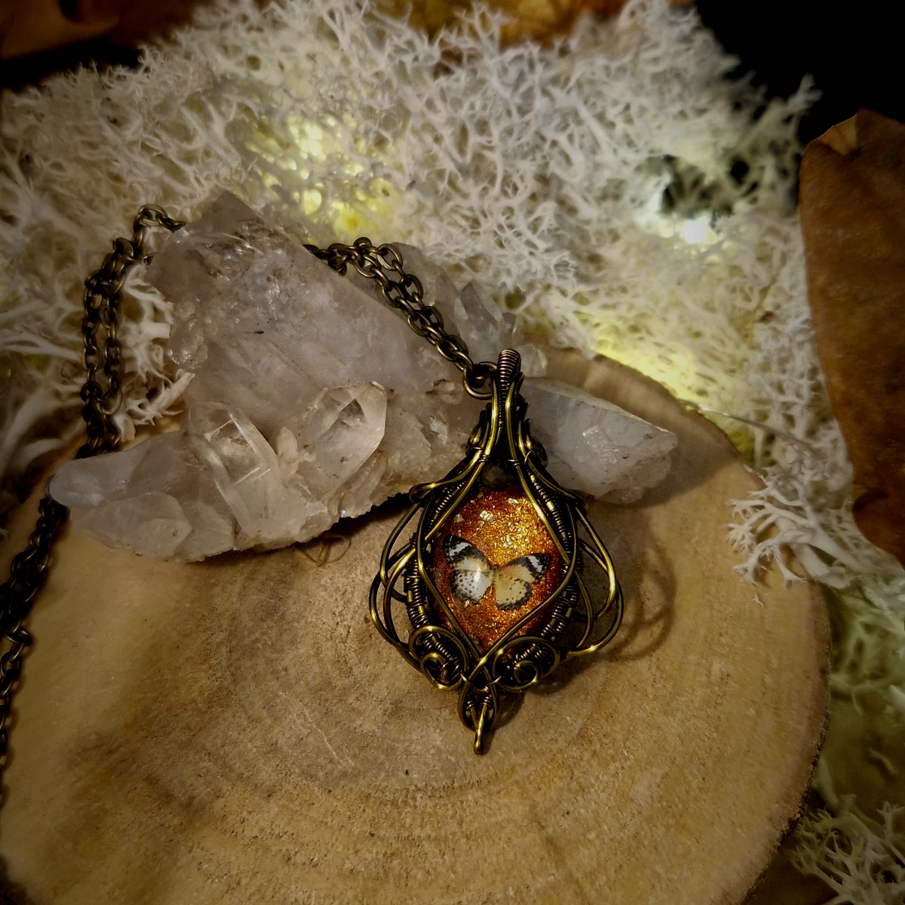 Technique de fabrication utilisée pour créer cette amulette papillons: Le wire-wrapping
