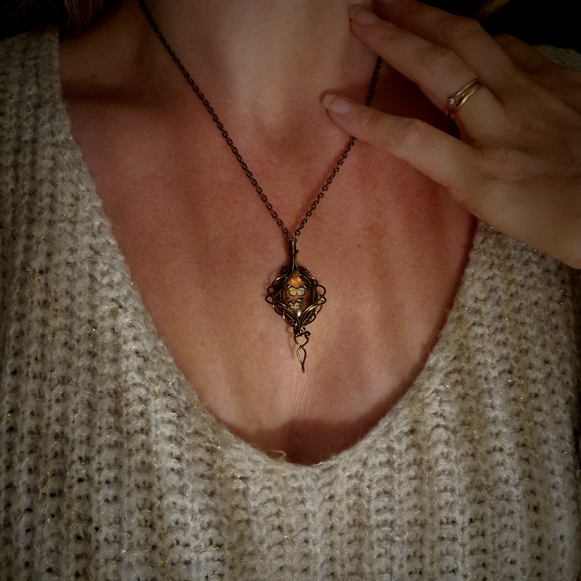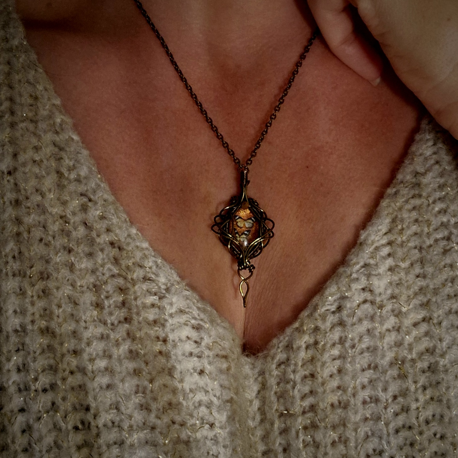 Chaque pendentif incarne un petit fragment de songe, un portail vers un monde où s’entrelacent rêve et réalité, porteur de l’ardent espoir de Cassandre, qu’un jour la splendeur de ce monde soit enfin révélée aux yeux de tous…