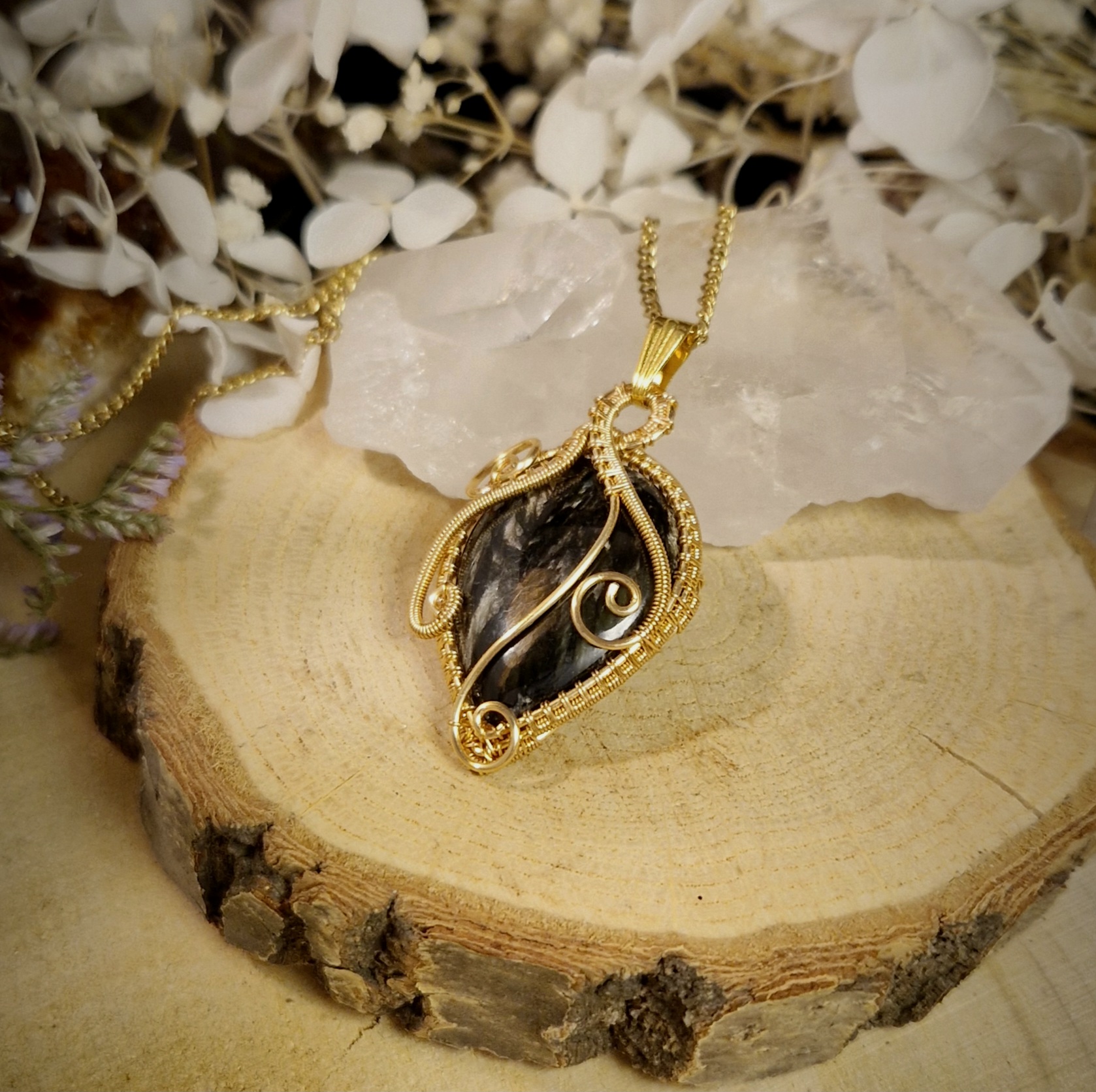 Nées du souffle des bois et du chant des rivières, les Nymphes veillent sur les forêts enchantées de Luminaris. Gardiennes des forces vives de la nature, elles insufflent leur magie bienfaisante au coeur de pierres millénaires. Les amulettes créées à partir ces précieux minéraux offrent ainsi harmonie et protection à leur porteur…