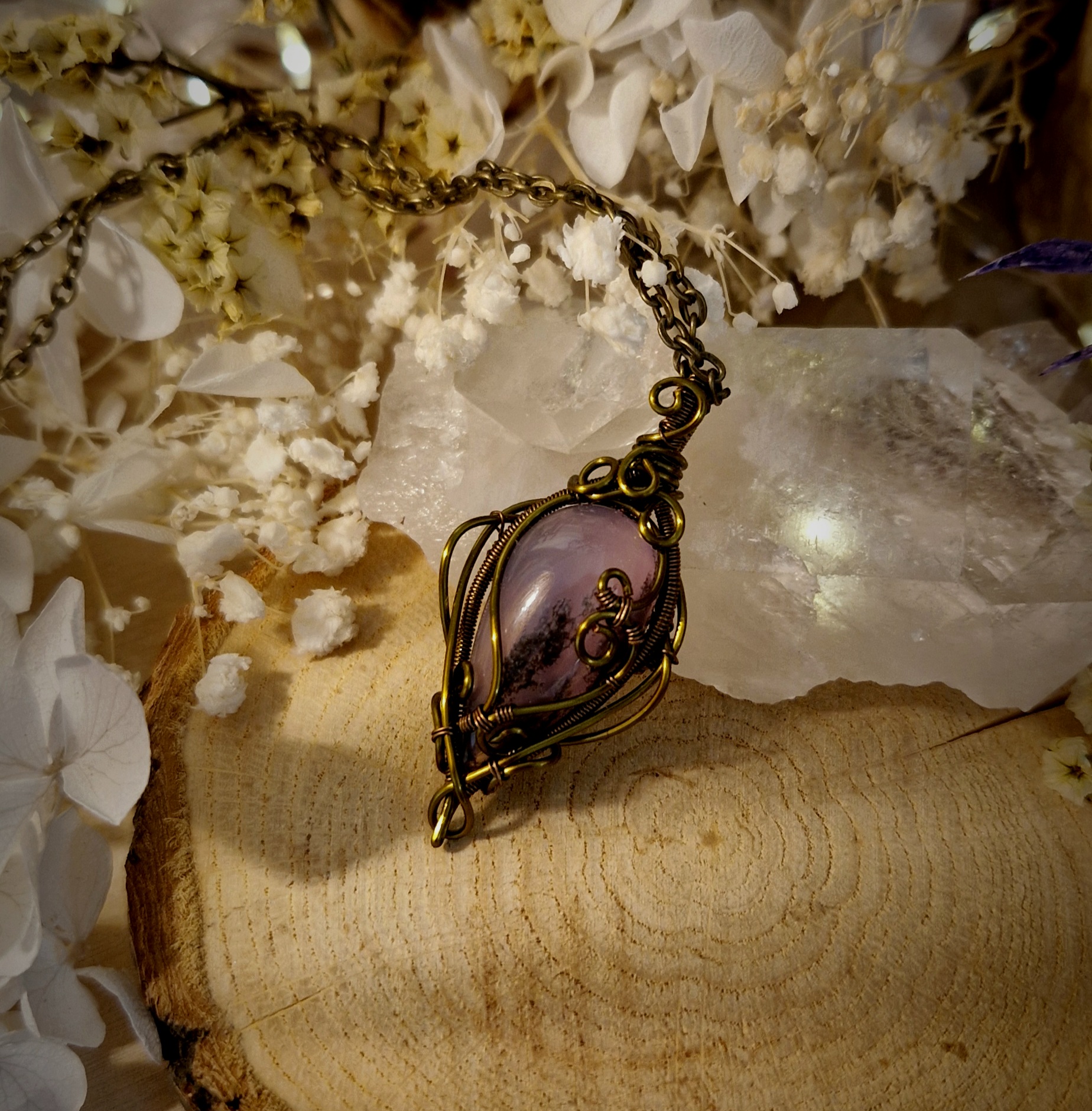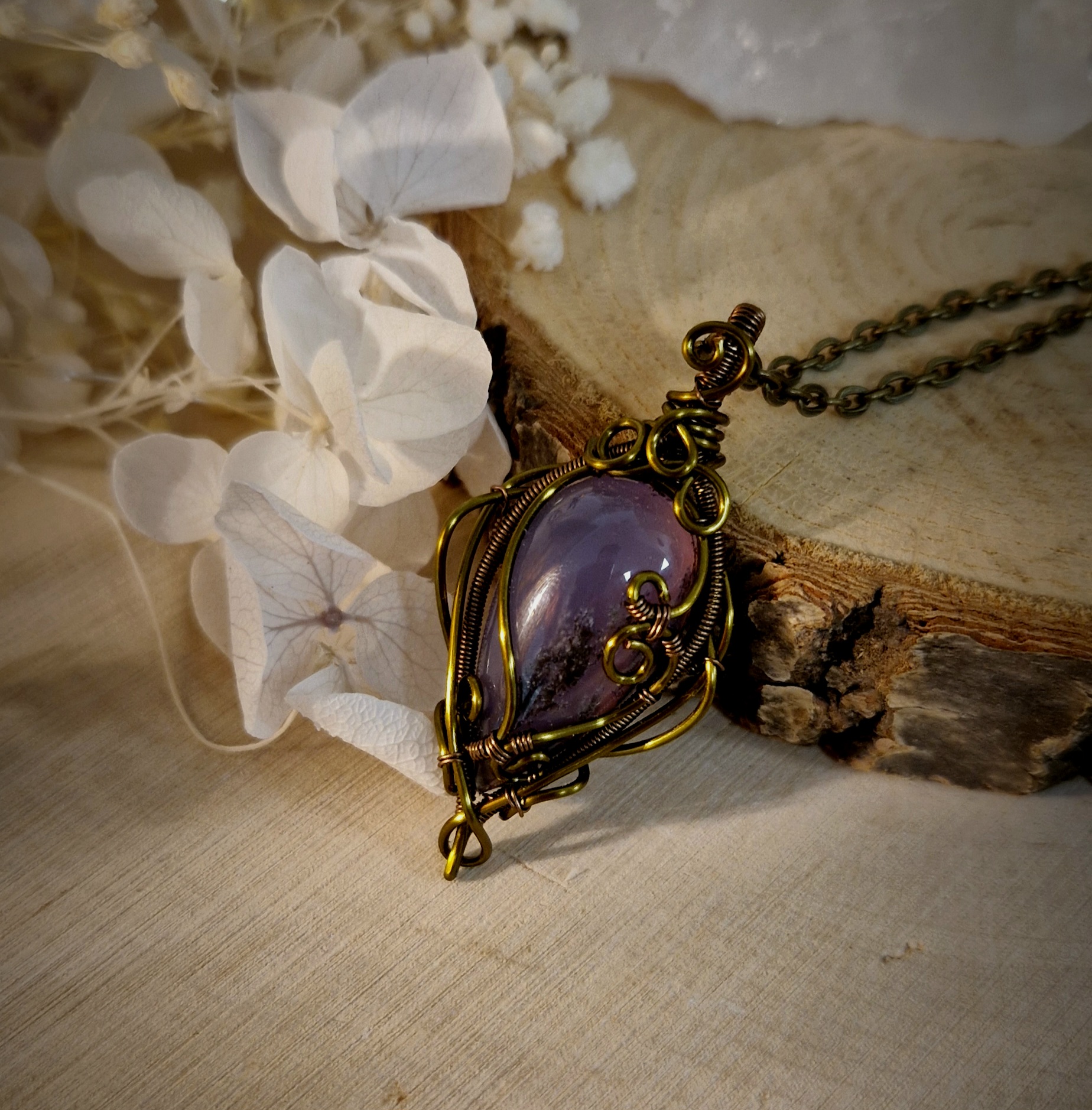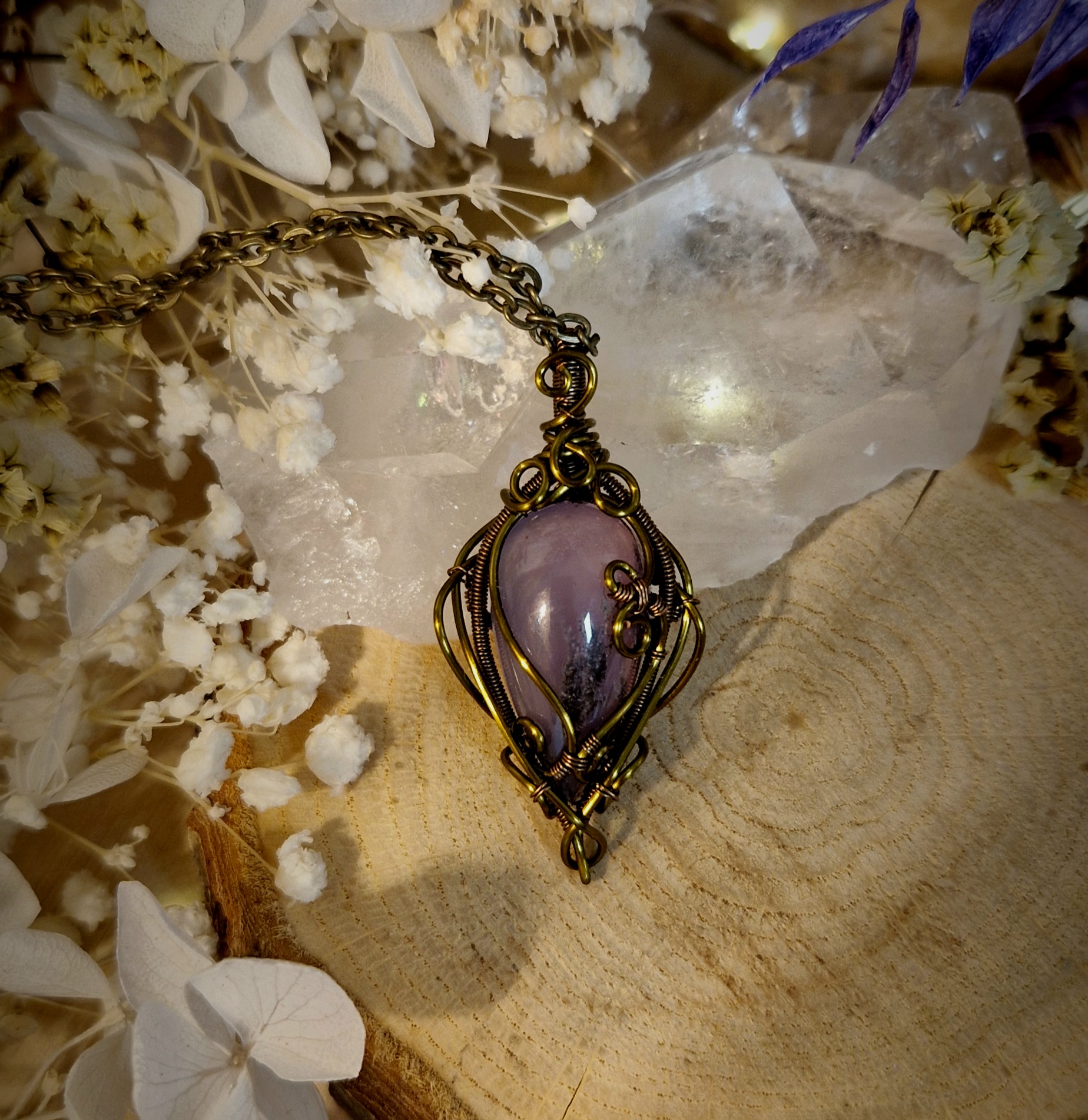 Laissez-vous envelopper par une douce tranquillité avec cette amulette en calcédoine violette, un bijou féerique façonné à la main pour infuser sérénité et paix dans votre quotidien. Son énergie apaisante vous guidera vers un état d’harmonie intérieure, parfait pour une femme en quête d’équilibre et de douceur.