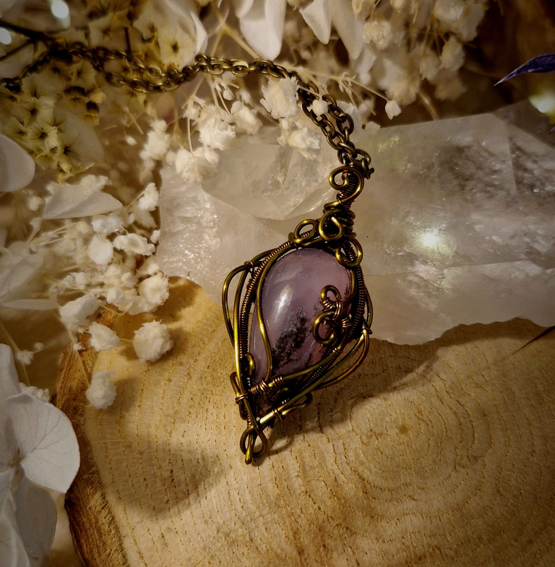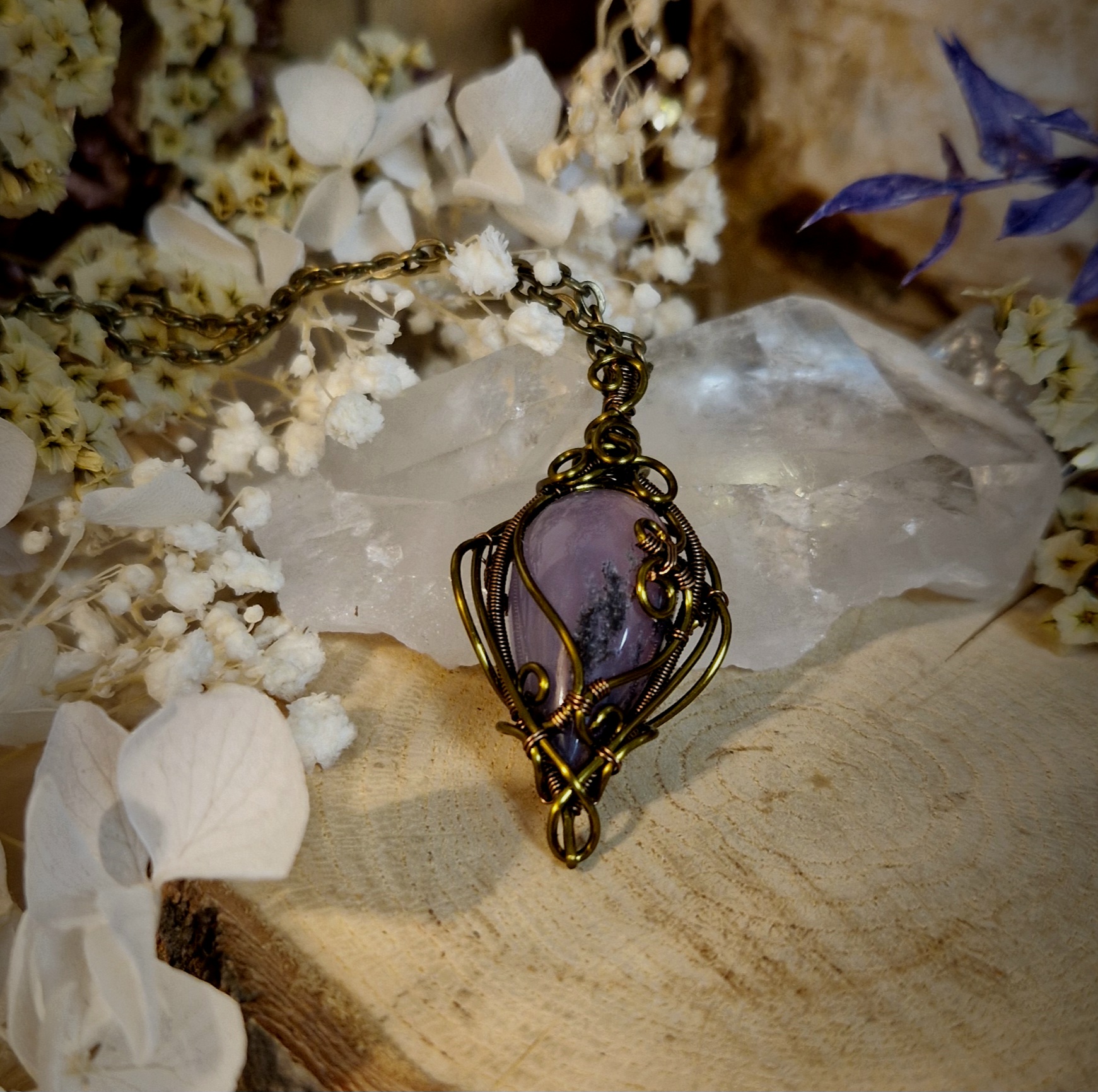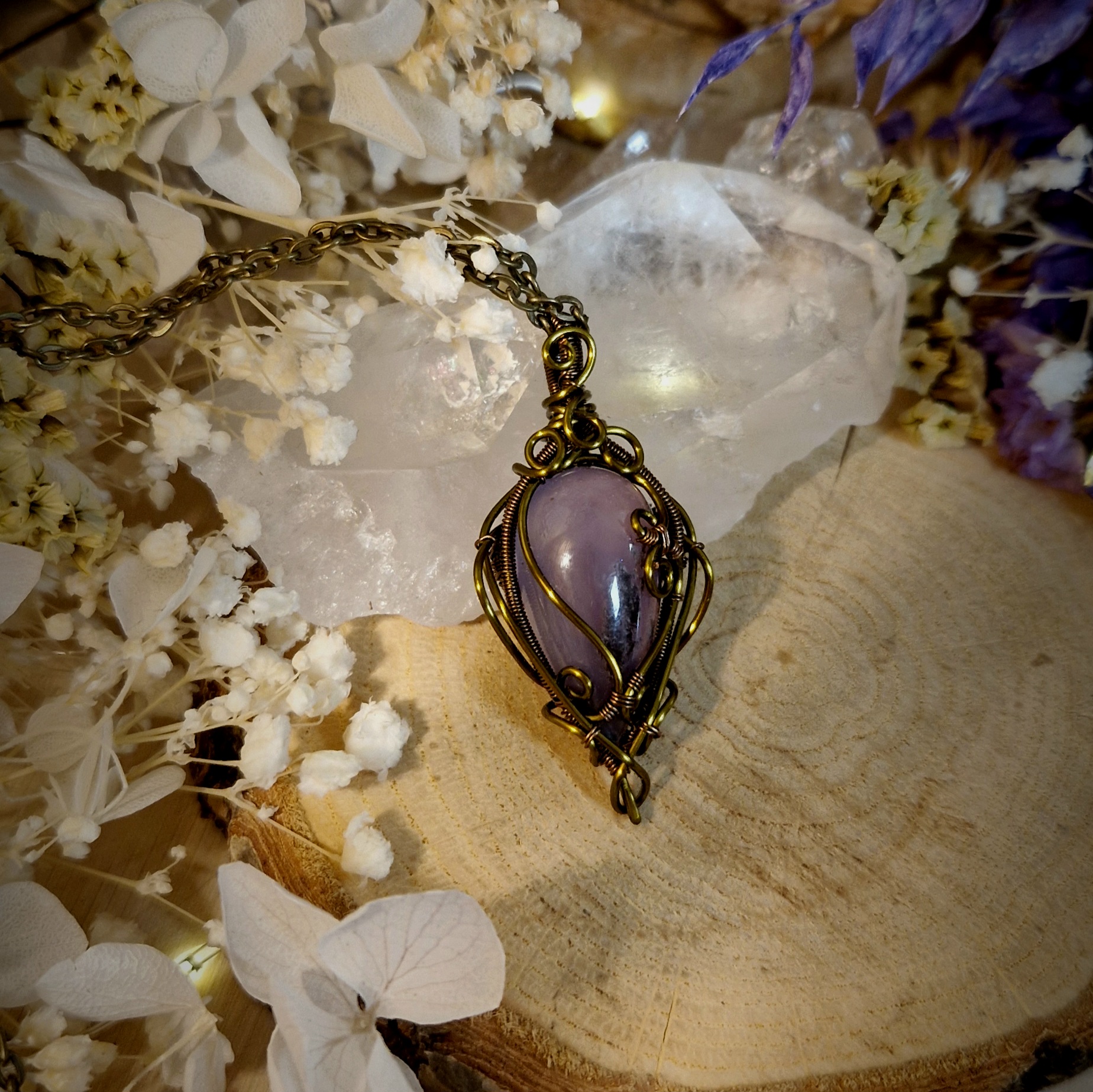 Laissez-vous envelopper par une douce tranquillité avec cette amulette en calcédoine violette, un bijou féerique façonné à la main pour infuser sérénité et paix dans votre quotidien. Son énergie apaisante vous guidera vers un état d’harmonie intérieure, parfait pour une femme en quête d’équilibre et de douceur.