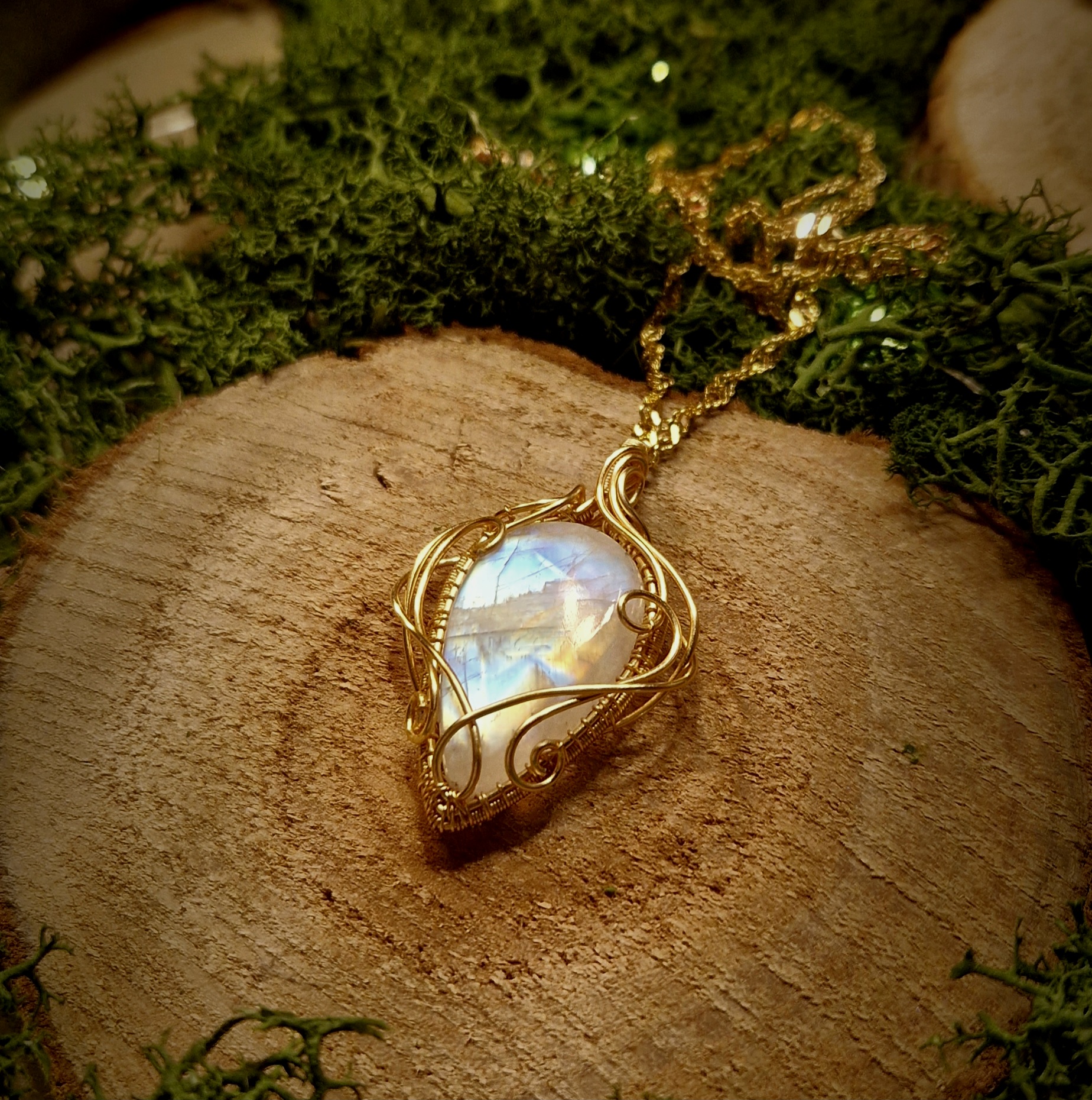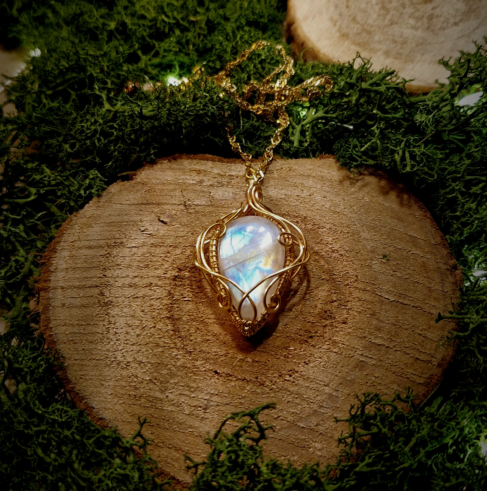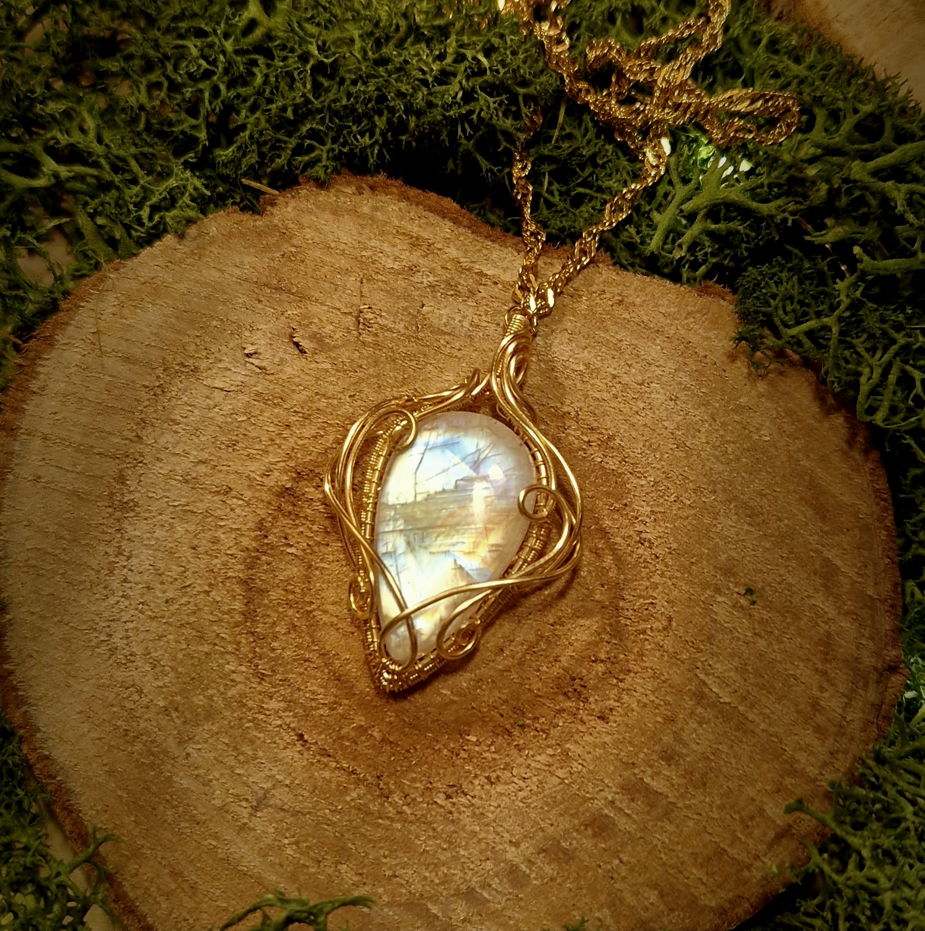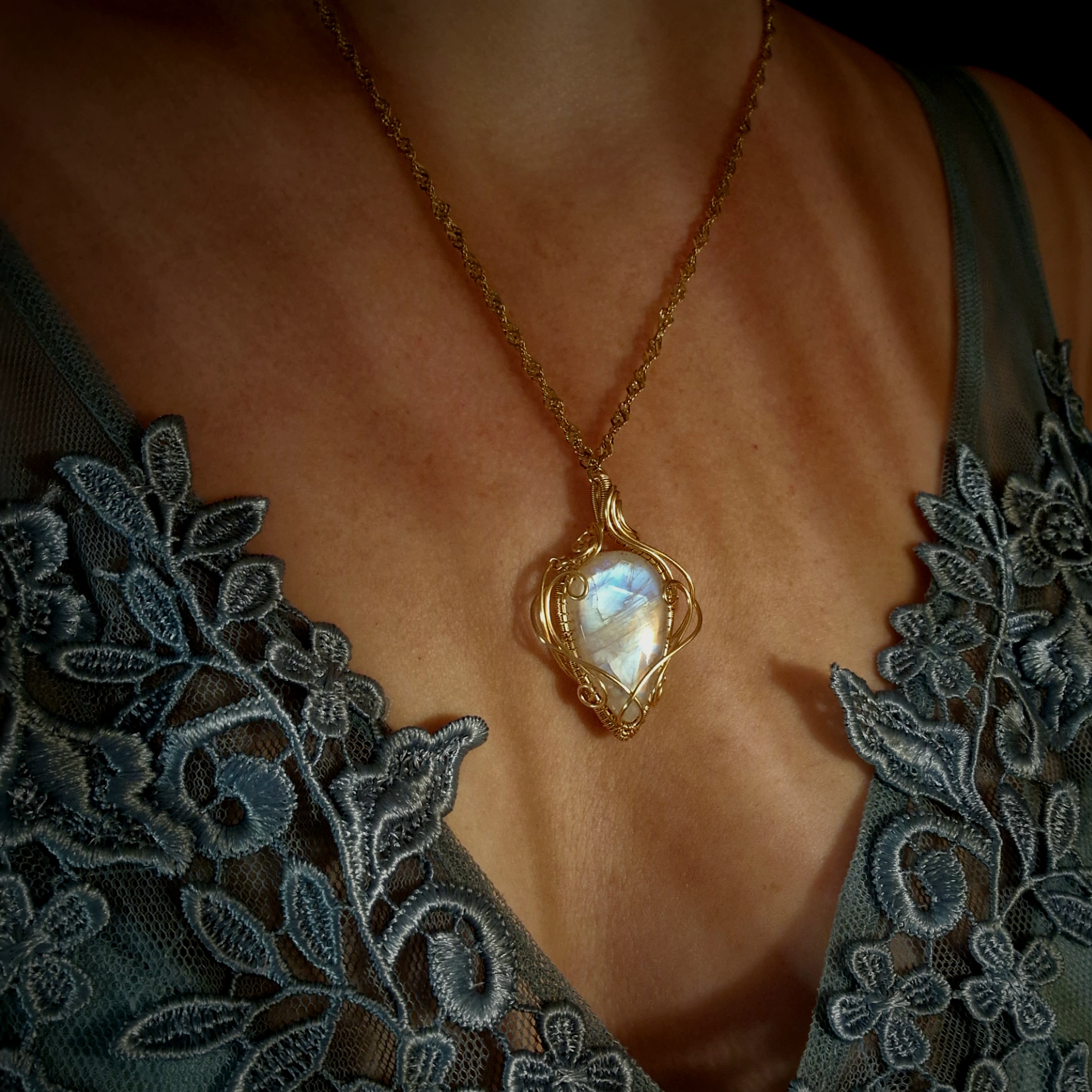 Technique de fabrication de ce pendentif artisanal en péristérite: Le wire-wrapping