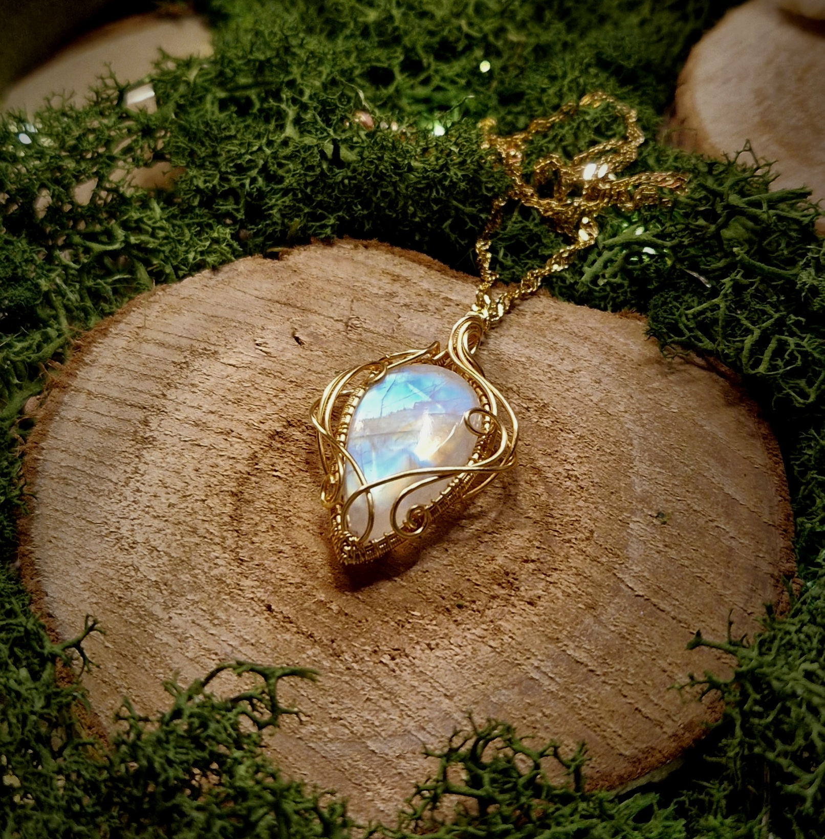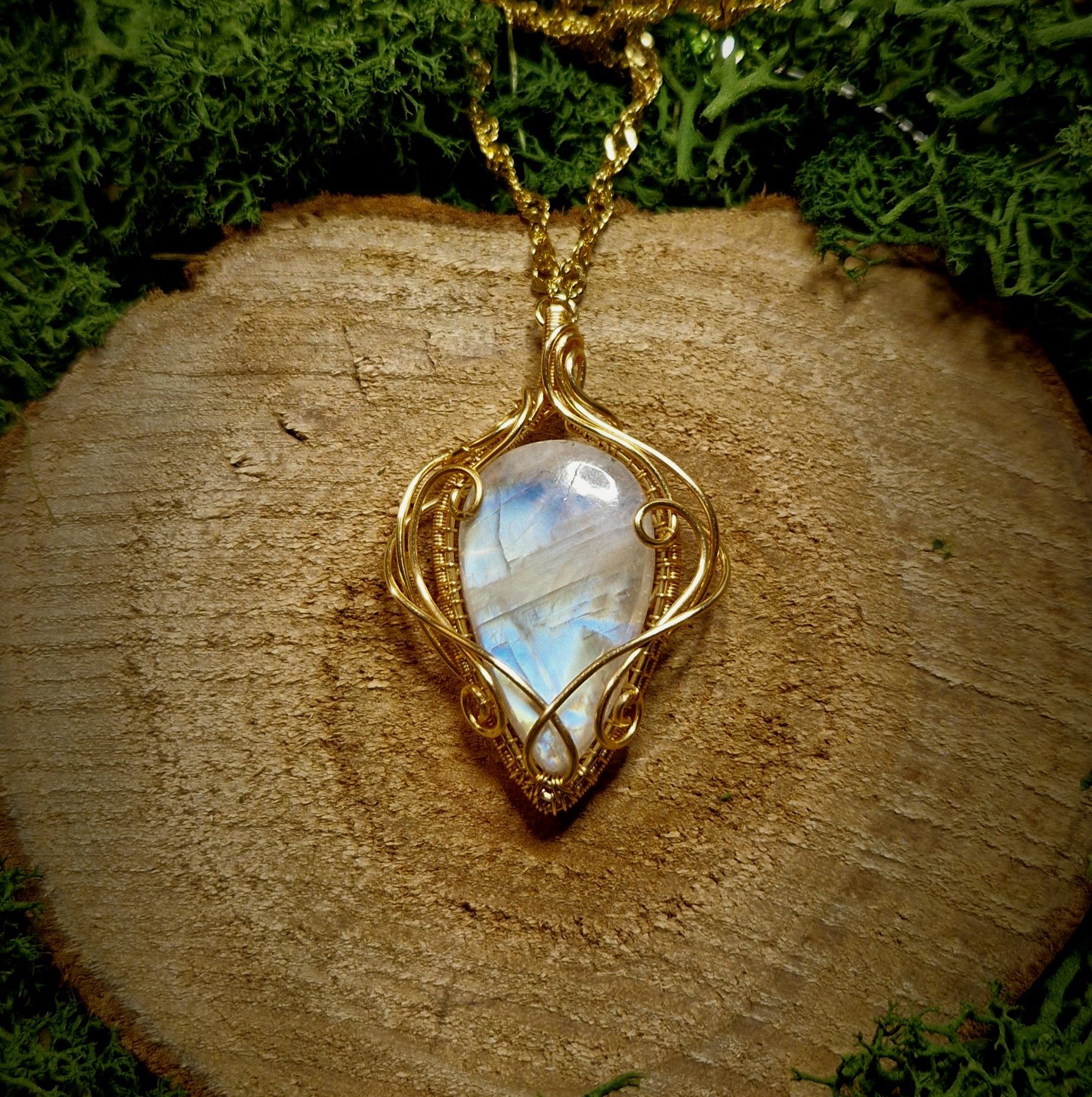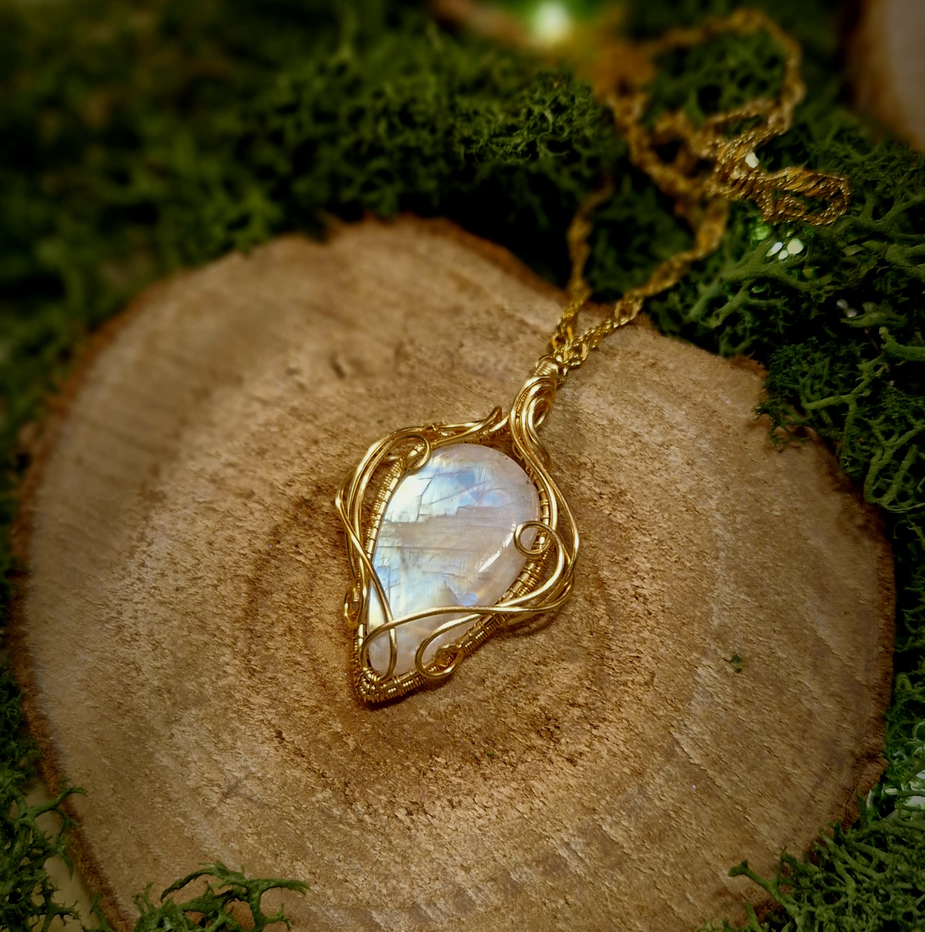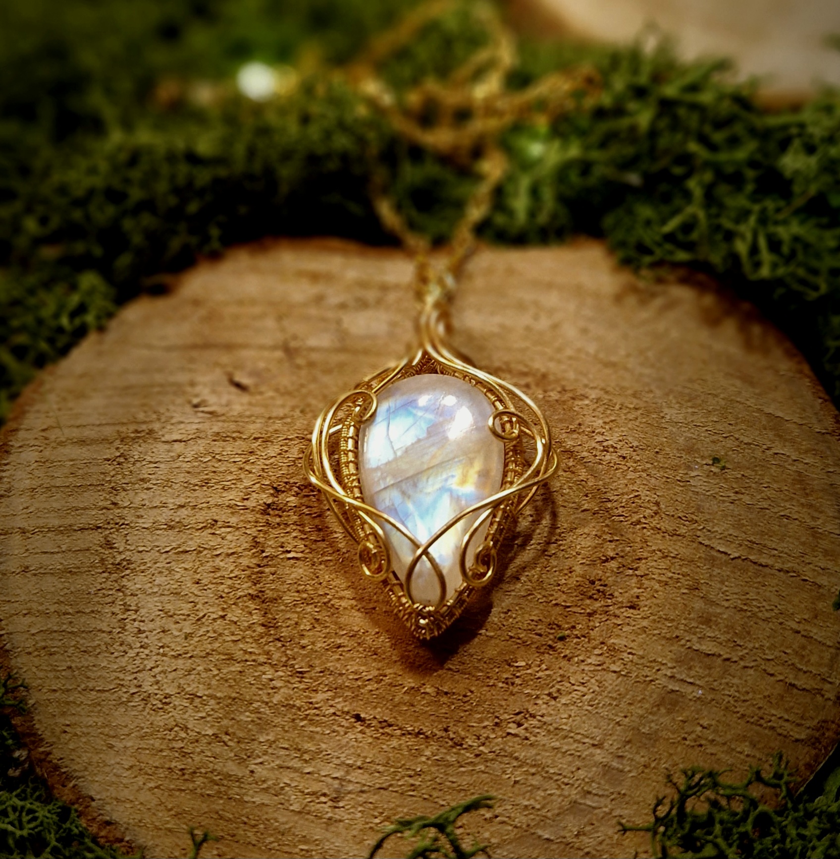 Technique de fabrication de ce pendentif artisanal en péristérite: Le wire-wrapping