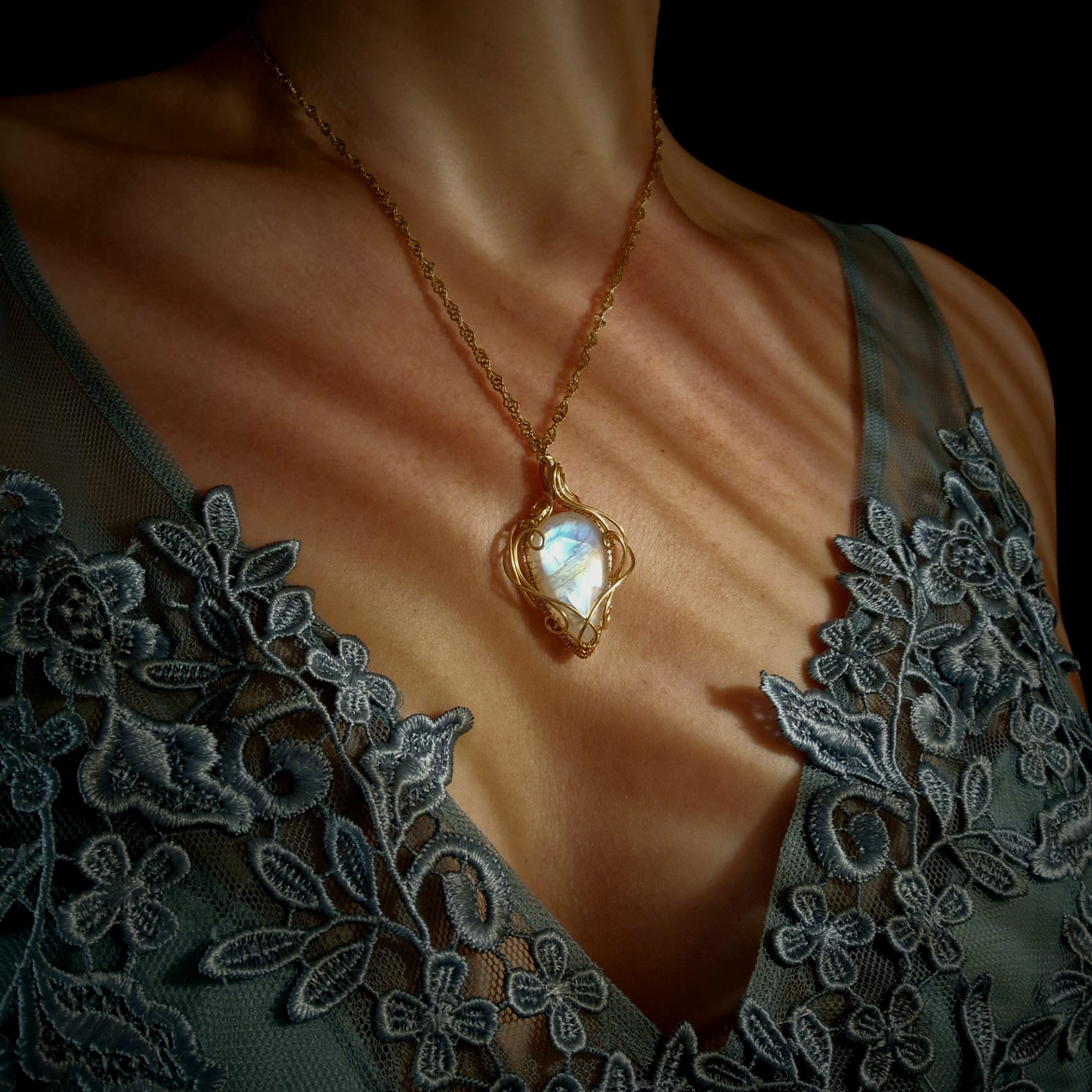 Un pendentif unique en péristérite inspiré d’une légende féerique:
