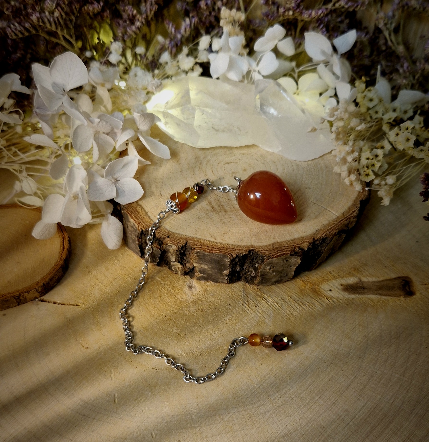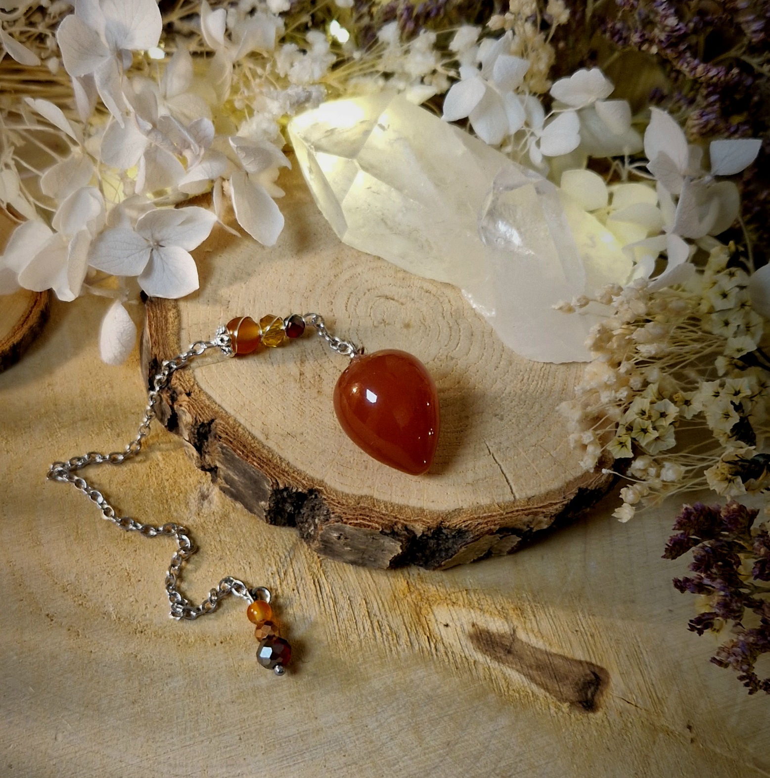 - Son pouvoir secret: Pierre de vitalité et motivation, la cornaline est idéale pour les rituels de Mabon, apportant courage et énergie pour entrer dans la nouvelle saison. Sa forme de goutte amplifie ses belles vibrations et ses teintes chaudes rappellent les couleurs rougeoyantes des feuilles d’automne!