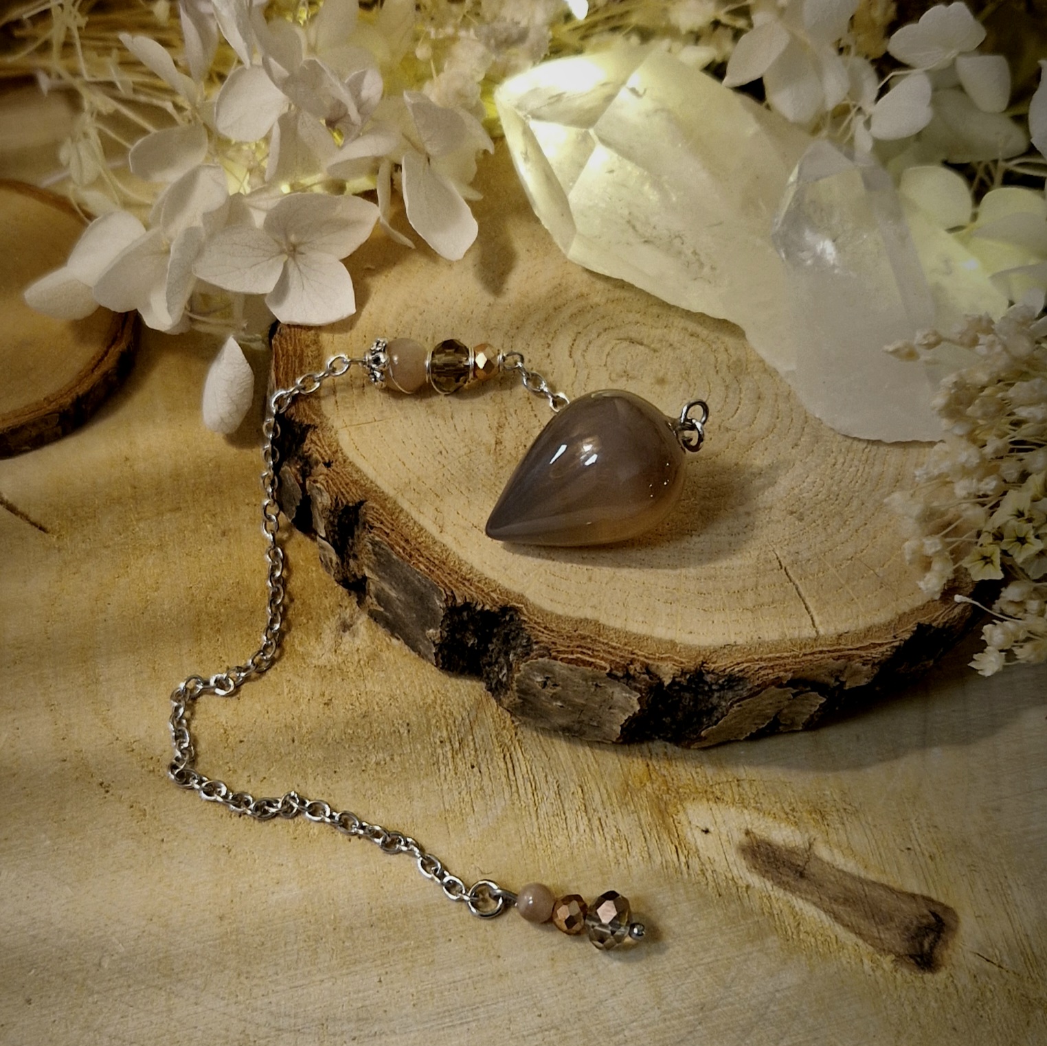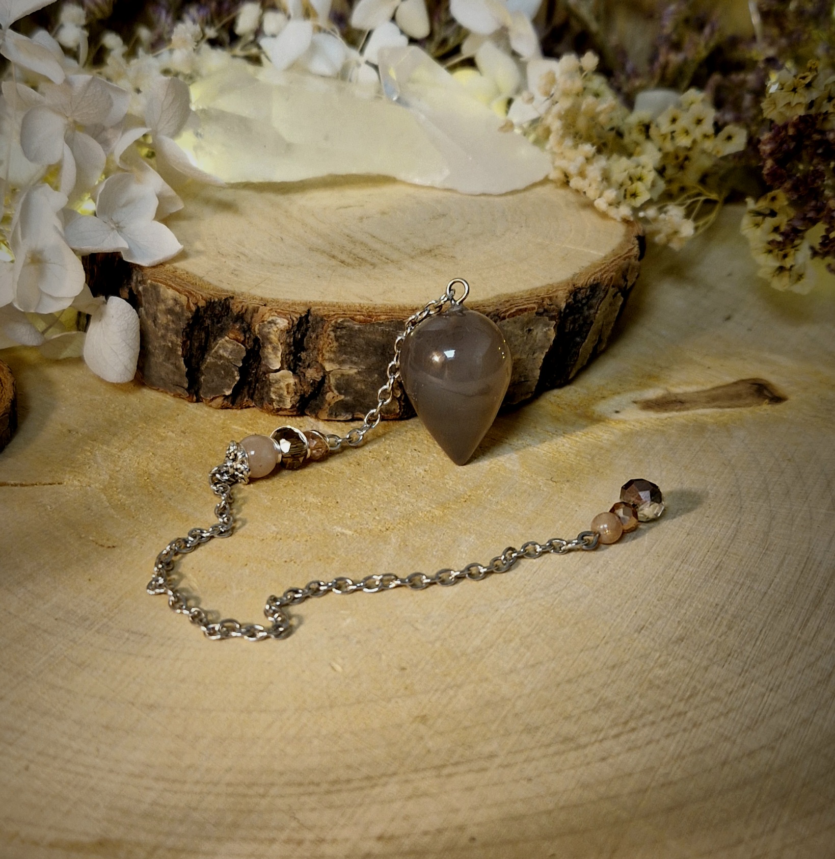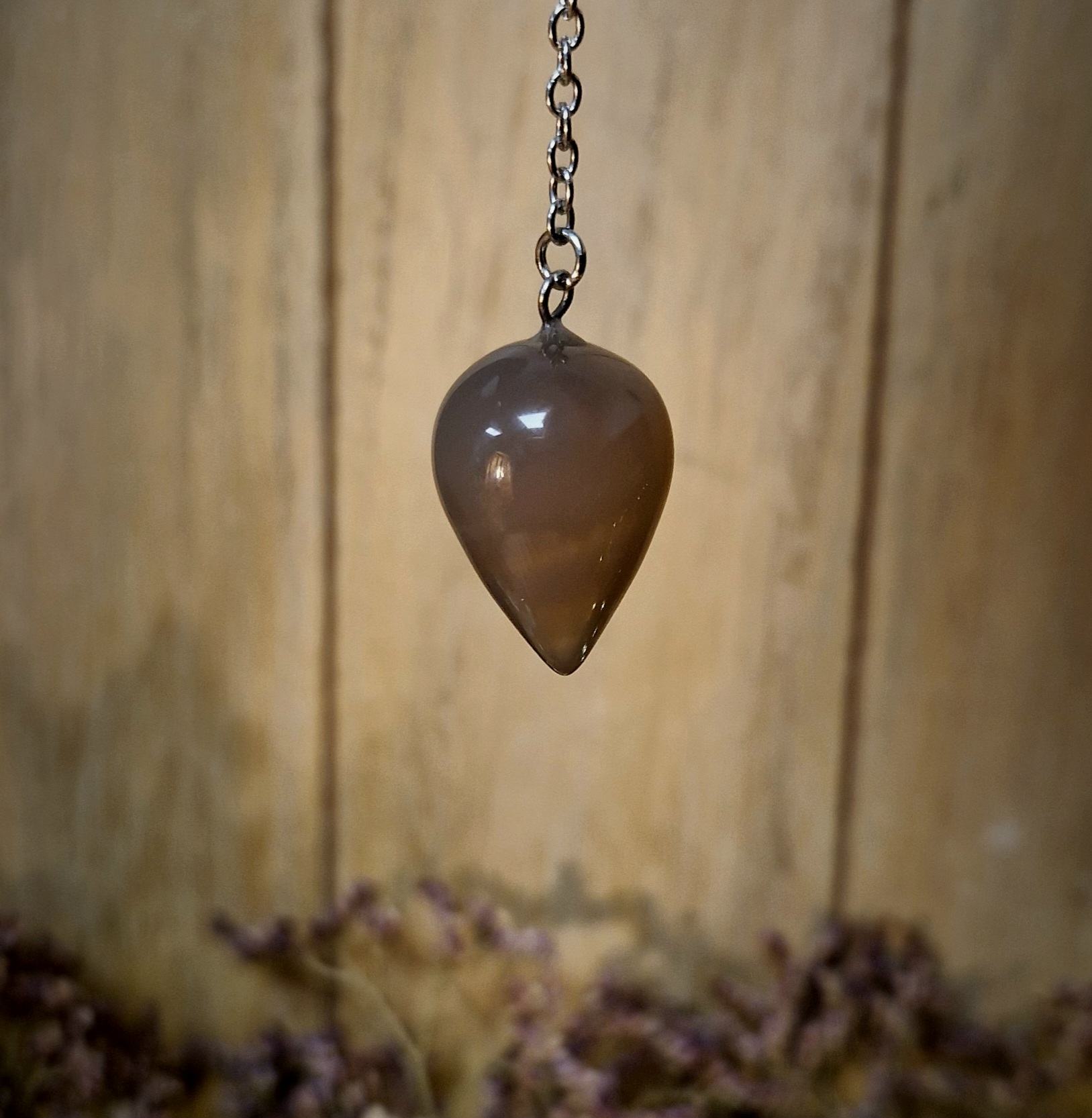 Laissez-vous charmer par les douces énergies de ce petit pendule en calcédoine grise créé main. Il vous apportera stabilité et réceptivité durant la période magique de Mabon!