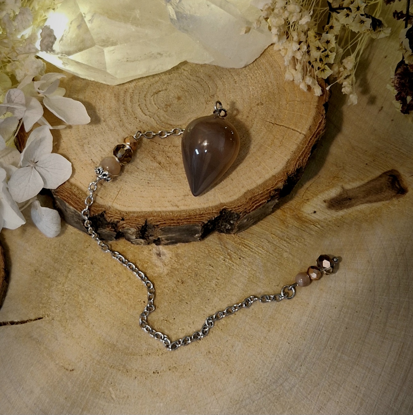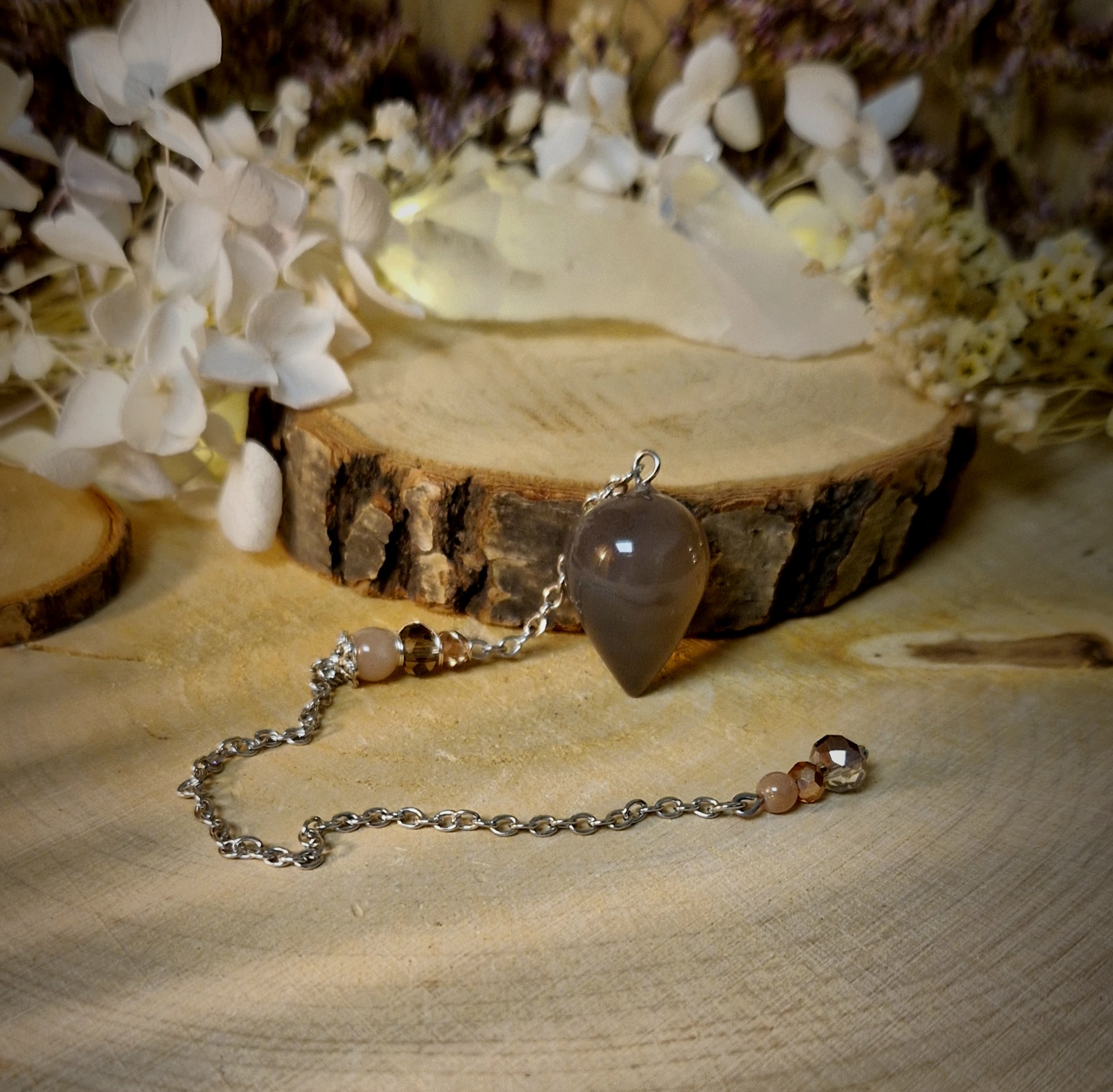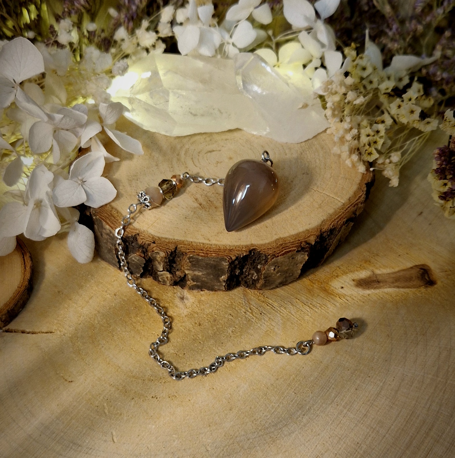 Laissez-vous charmer par les douces énergies de ce petit pendule en calcédoine grise créé main. Il vous apportera stabilité et réceptivité durant la période magique de Mabon!