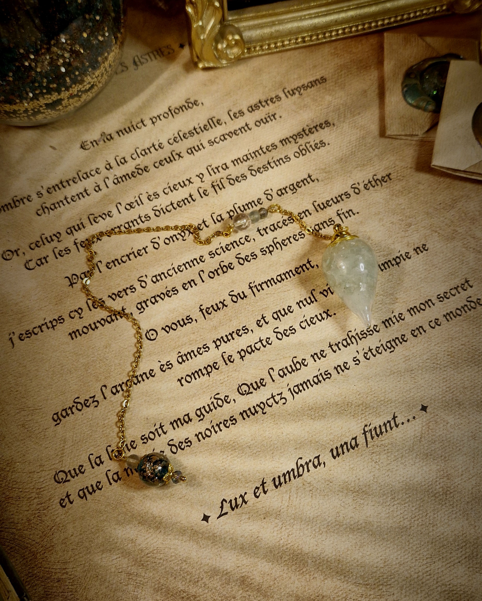 Pendule luminescent doré Imbolc ~ Calcite verte
