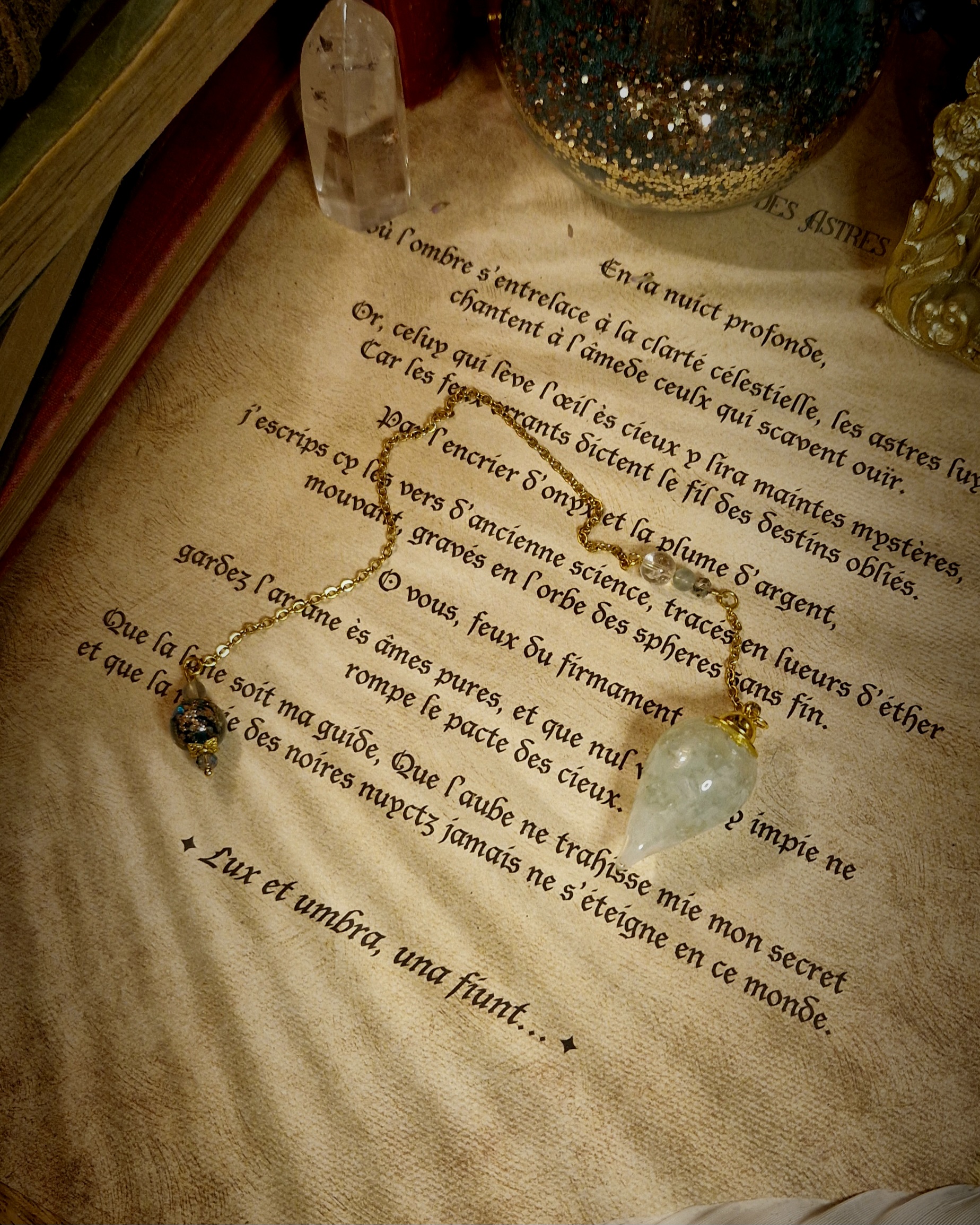 • Sa luminescence qui évoque le retour progressif de la lumière purificatrice et féconde, annonciatrice du printemps à venir…Il donnera un éclat magique et enchanteur à vos séances de divination