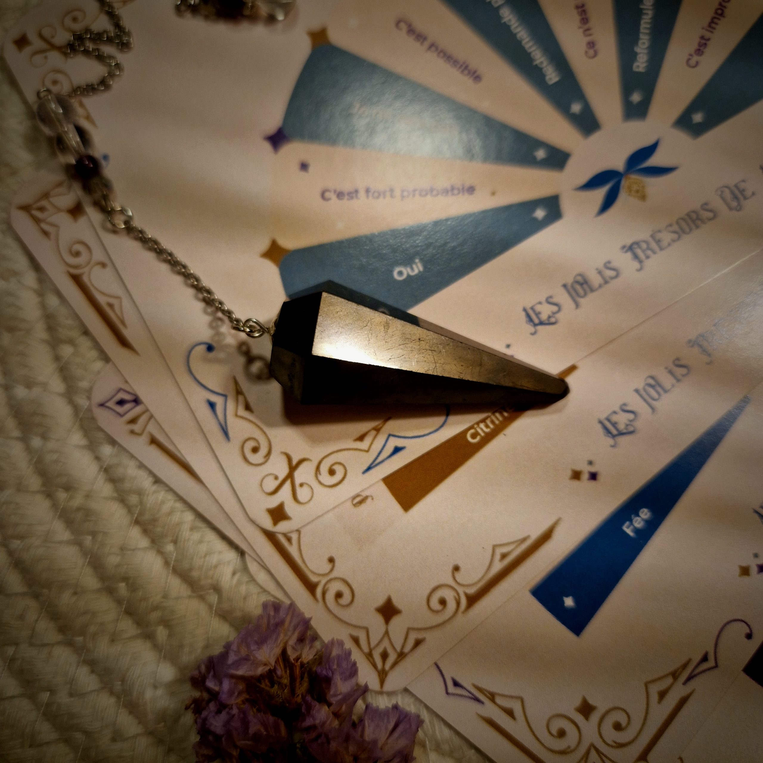 Explorez l’univers envoûtant de la divination grâce à ce magnifique pendule en shungite conçu tout spécialement pour vous accompagner dans votre quête spirituelle.