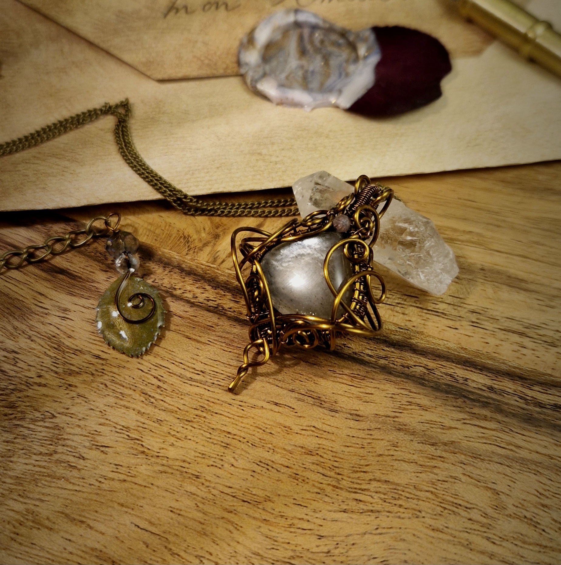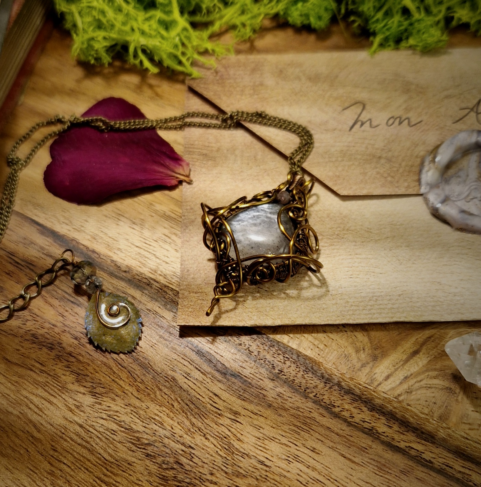 Technique de fabrication de ce bijou talisman en pierre de lune: Le wire-wrapping