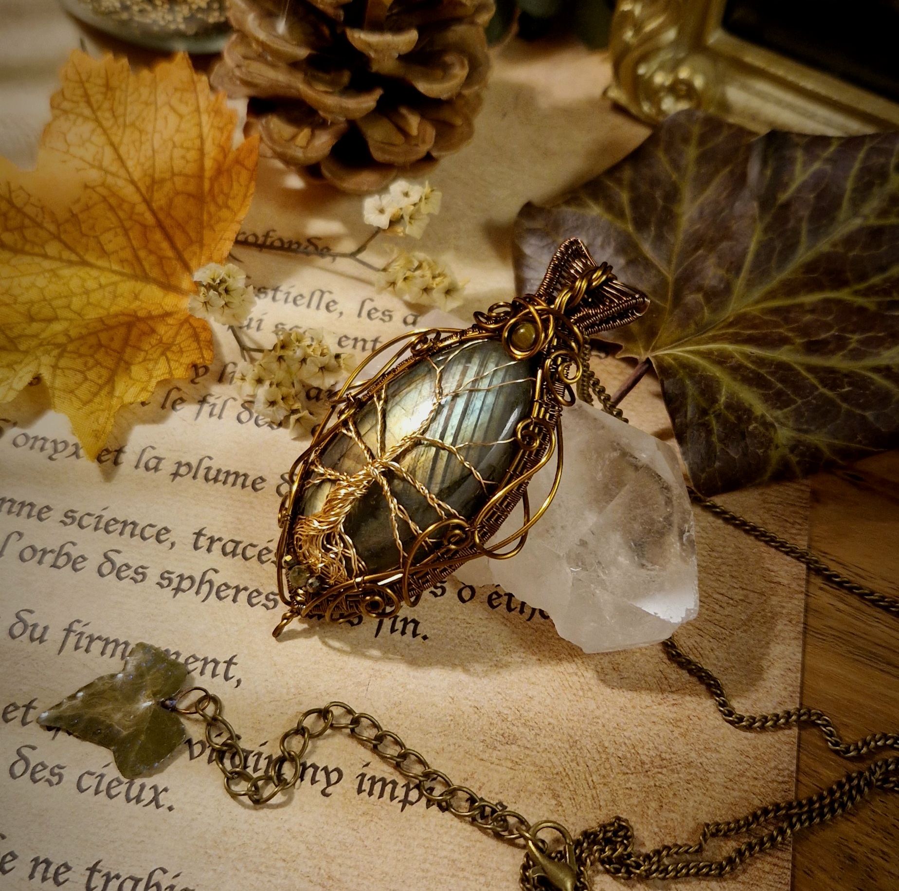 Technique de fabrication de ce bijou talisman en labradorite: Le wire-wrapping