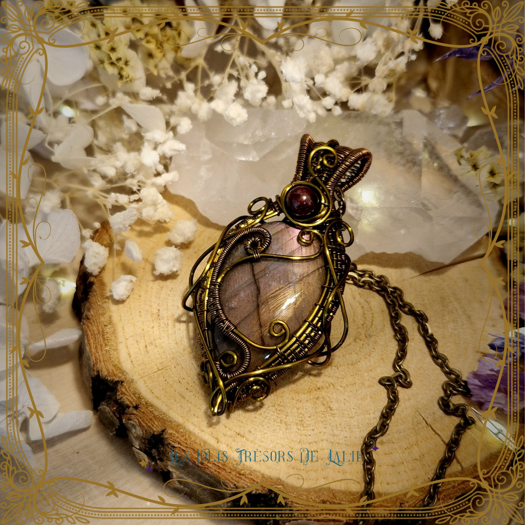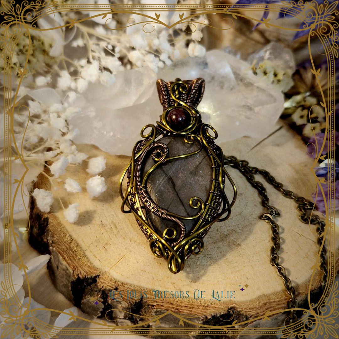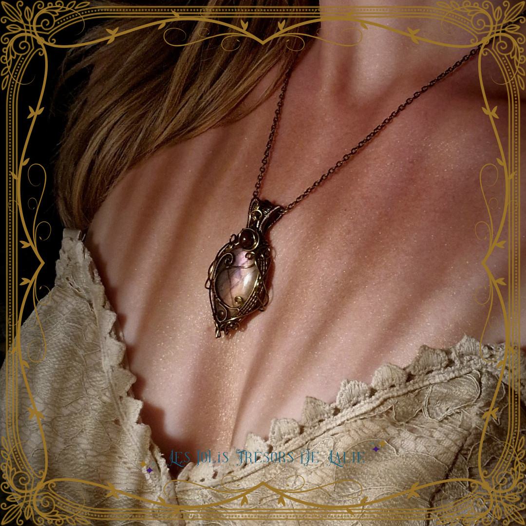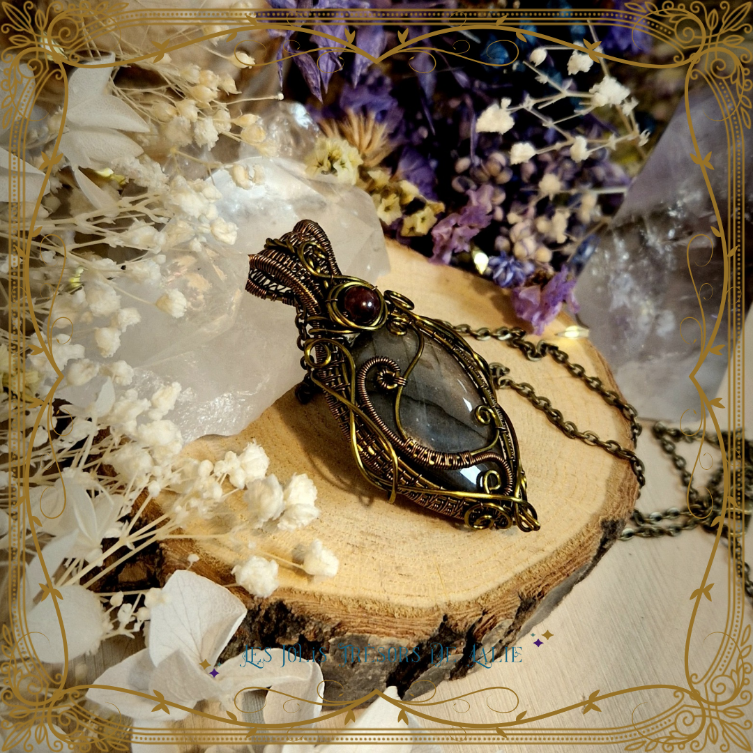 Laissez-vous envoûter par les incroyables reflets de ce grand collier en bronze antique et labradorite. Inspiré de Lysippé, la grande sage des amazones. Ce bijou féerique et artisanal, conçu main, ajoutera non seulement une aura de mystère à votre style mais vous permettra également d’harmoniser les énergies qui vous entourent.