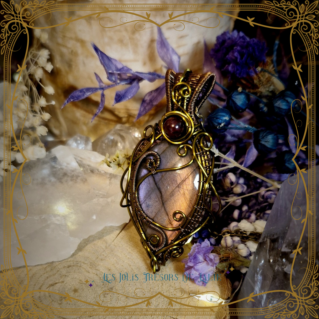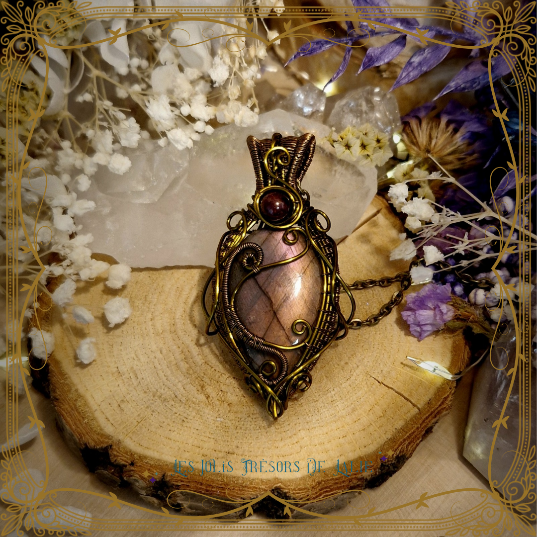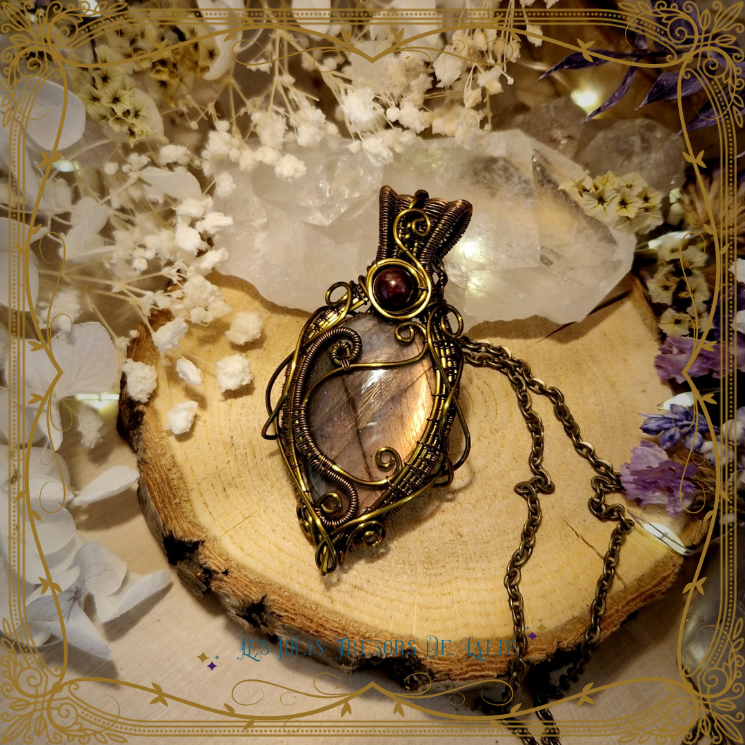 Laissez-vous envoûter par les incroyables reflets de ce grand collier en bronze antique et labradorite. Inspiré de Lysippé, la grande sage des amazones. Ce bijou féerique et artisanal, conçu main, ajoutera non seulement une aura de mystère à votre style mais vous permettra également d’harmoniser les énergies qui vous entourent.