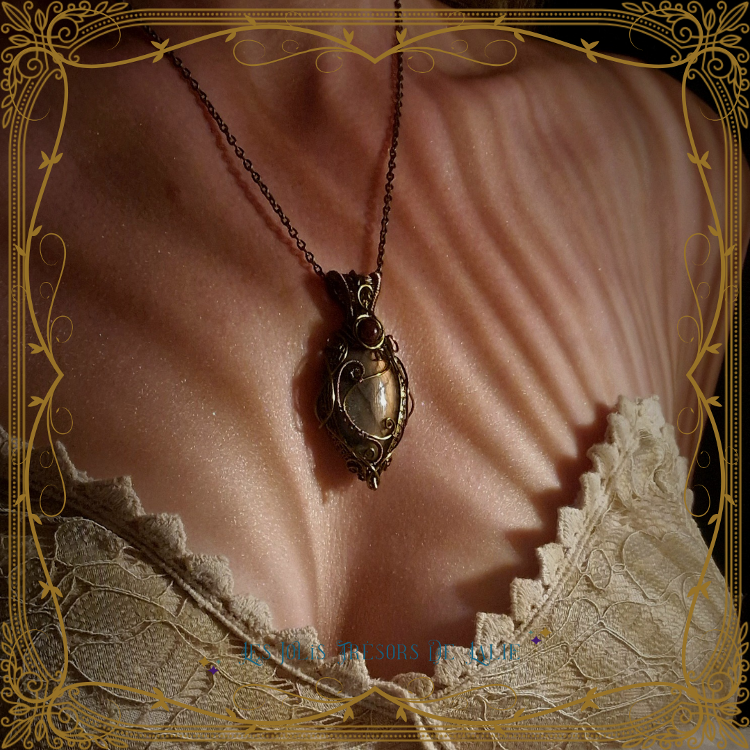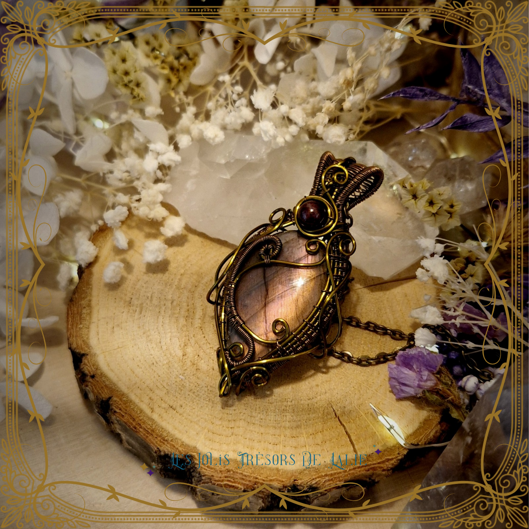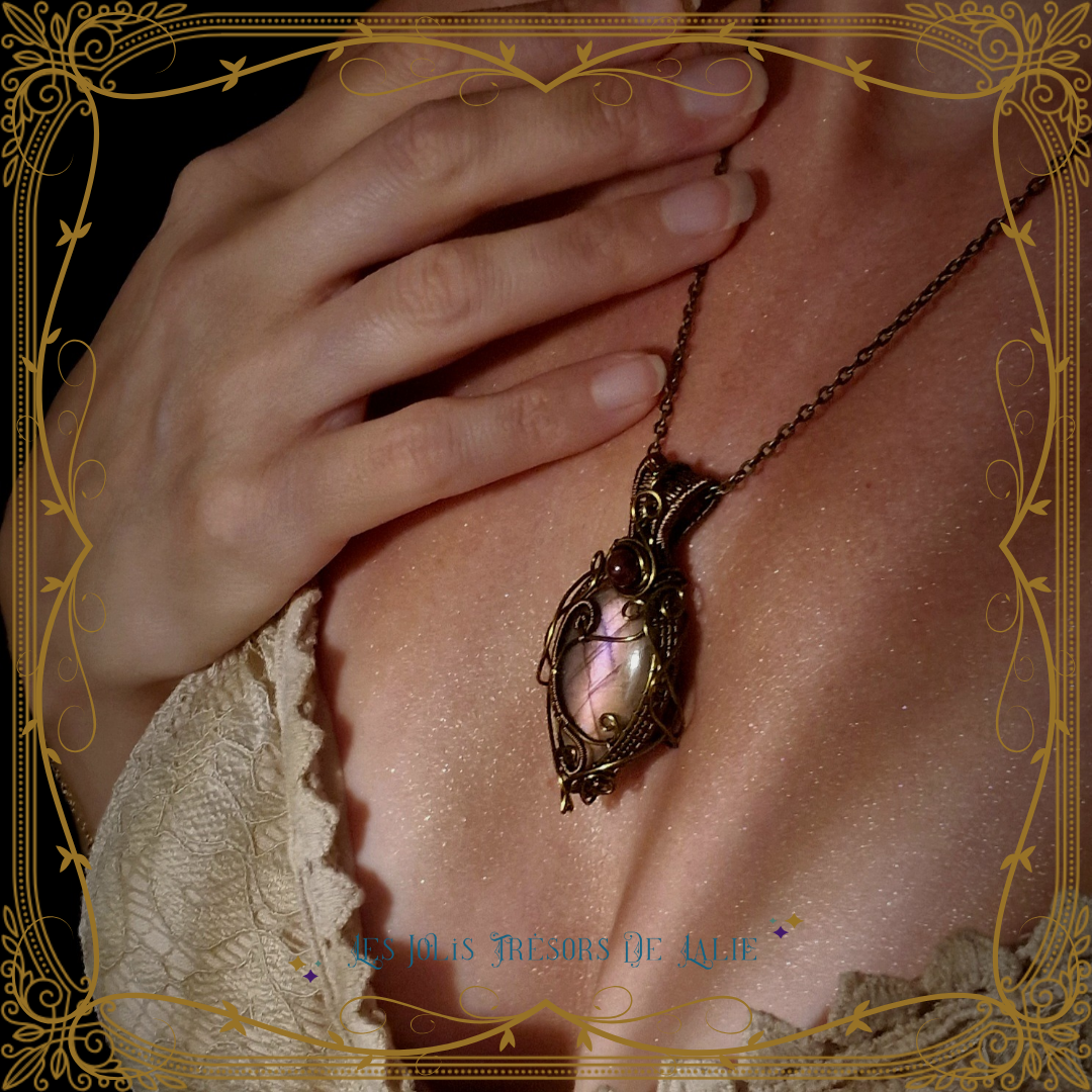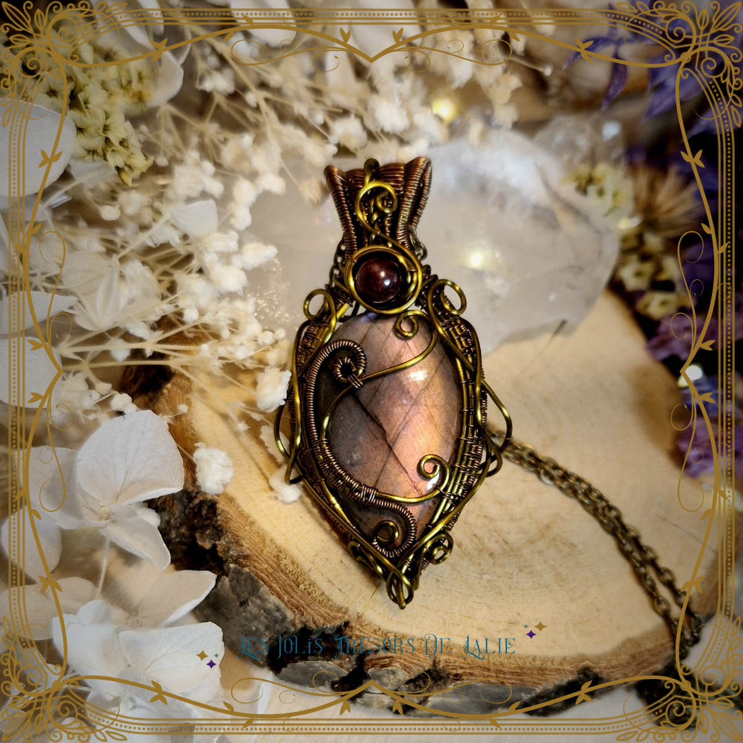 Laissez-vous envoûter par les incroyables reflets de ce grand collier en bronze antique et labradorite. Inspiré de Lysippé, la grande sage des amazones. Ce bijou féerique et artisanal, conçu main, ajoutera non seulement une aura de mystère à votre style mais vous permettra également d’harmoniser les énergies qui vous entourent.