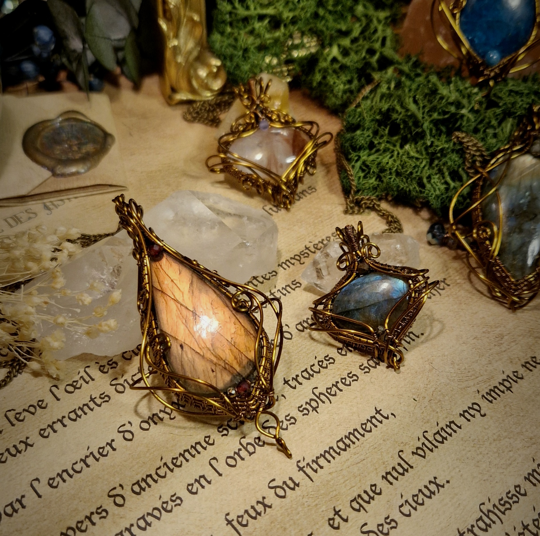 Cette technique ancestrale d’artisanat consiste à sertir différents supports (Pierres, gemmes, perles, etc…) à l’aide de fils de métal enroulés et/ou tissés de manières plus ou moins complexes, sans soudure ni colle. Cette méthode permet d’imaginer et de créer des pièces absolument uniques!