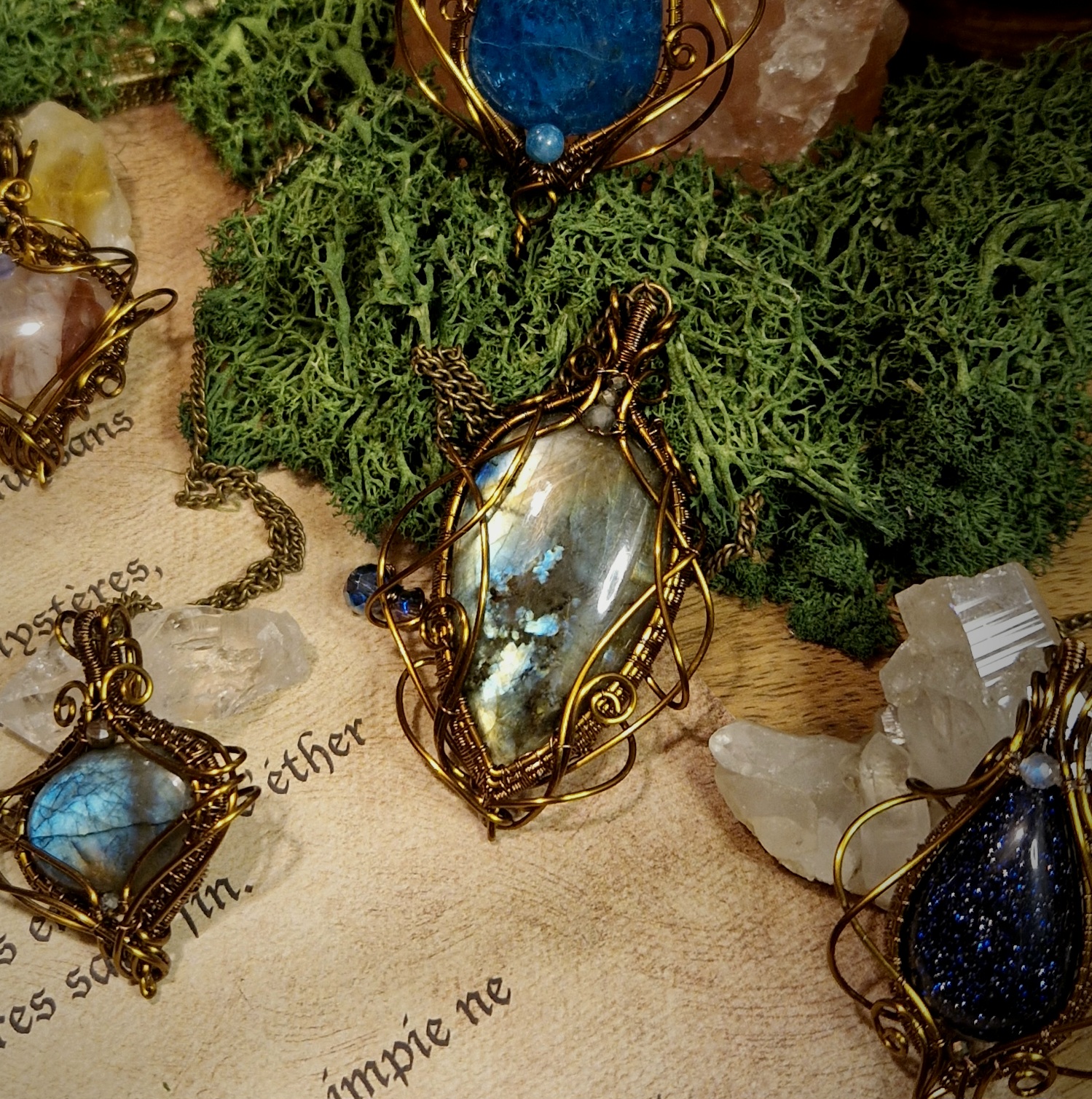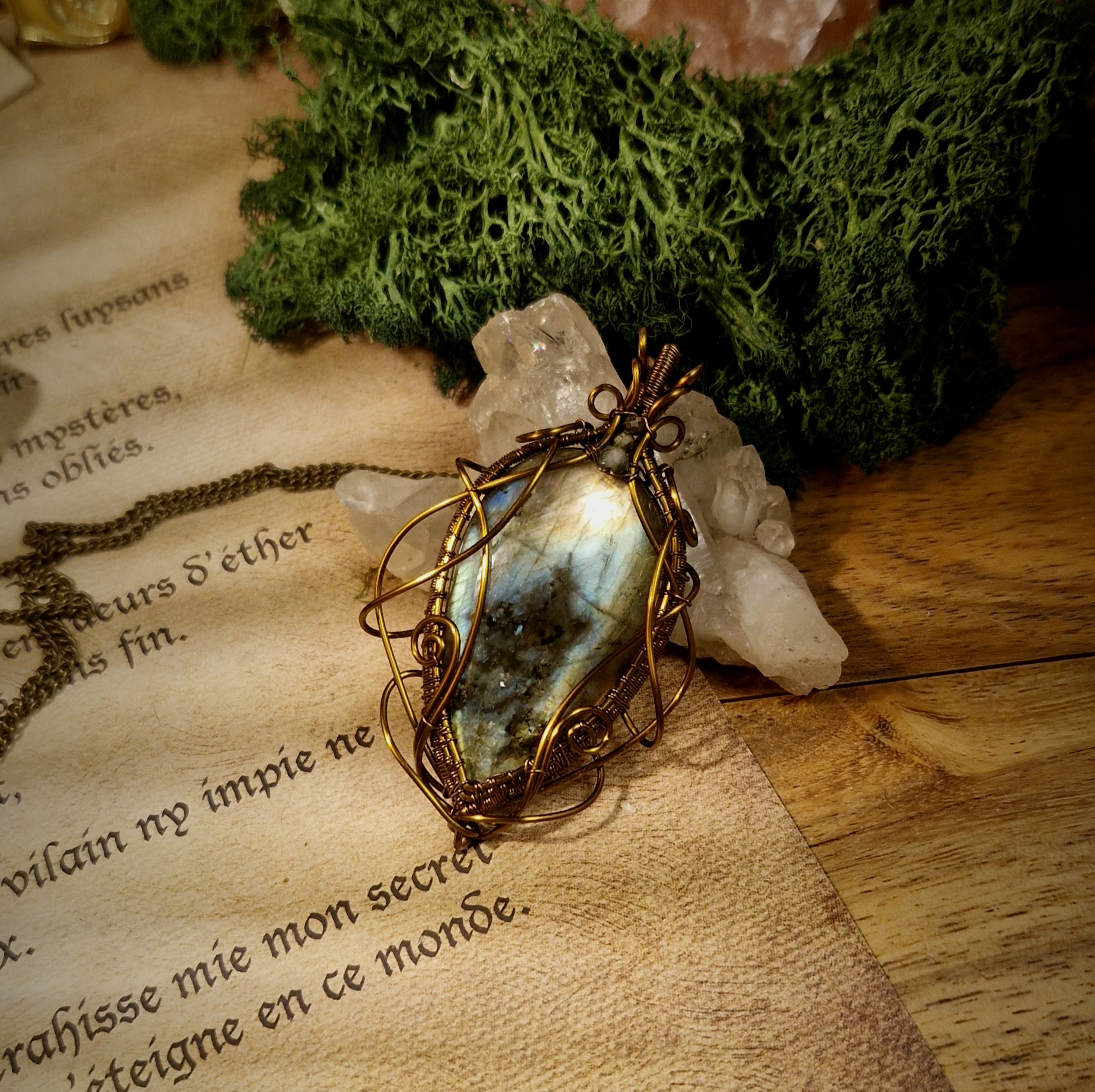 Technique de fabrication de ce bijou talisman en labradorite: Le wire-wrapping