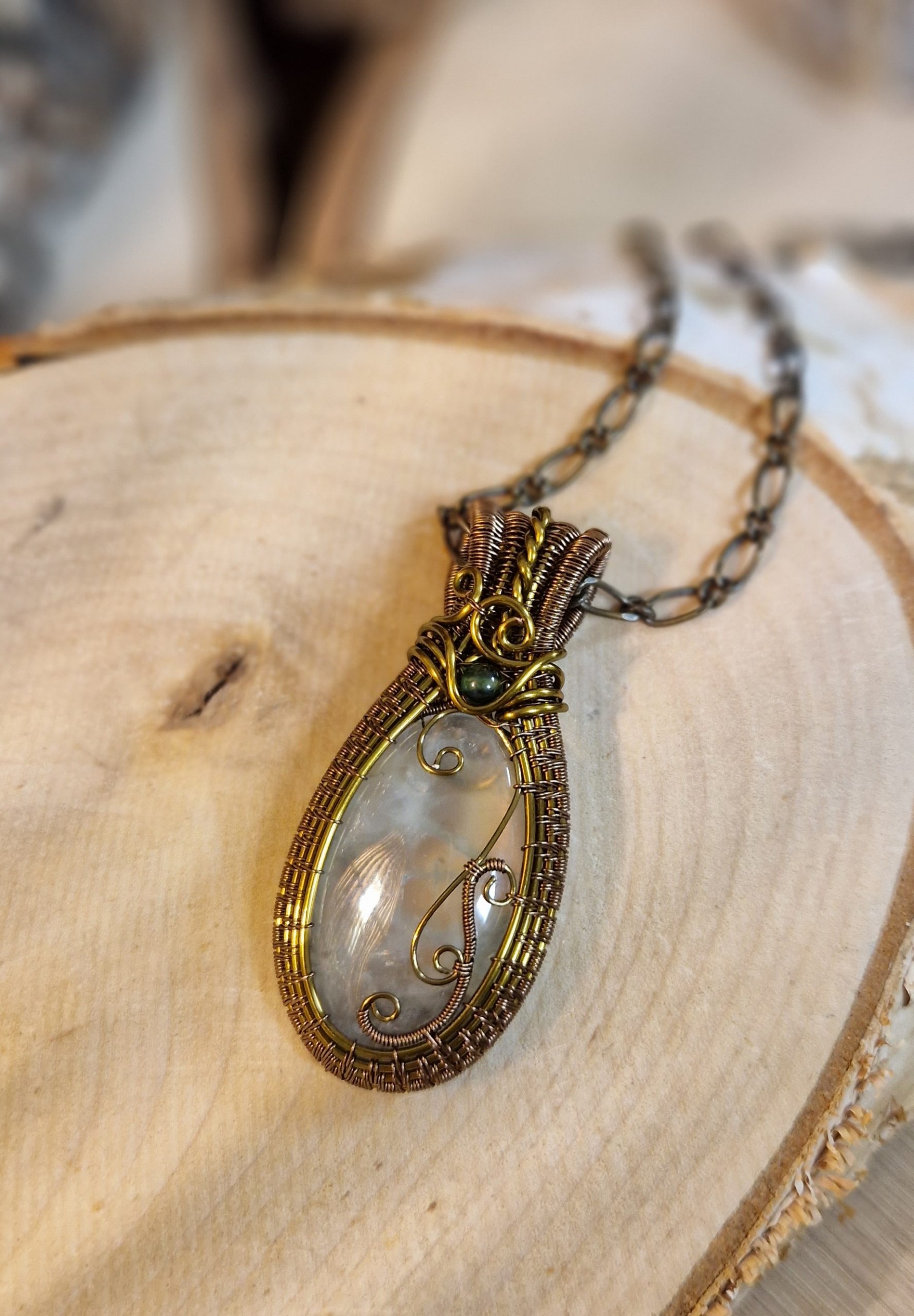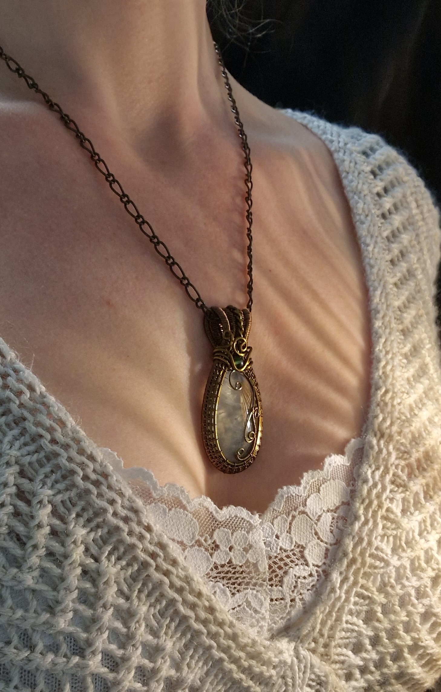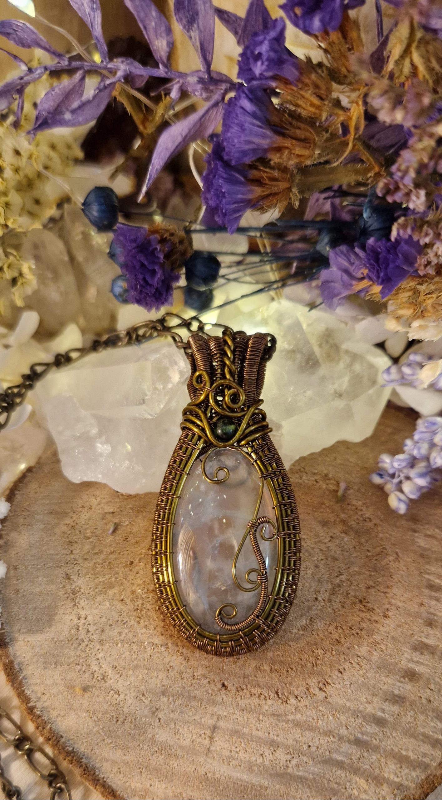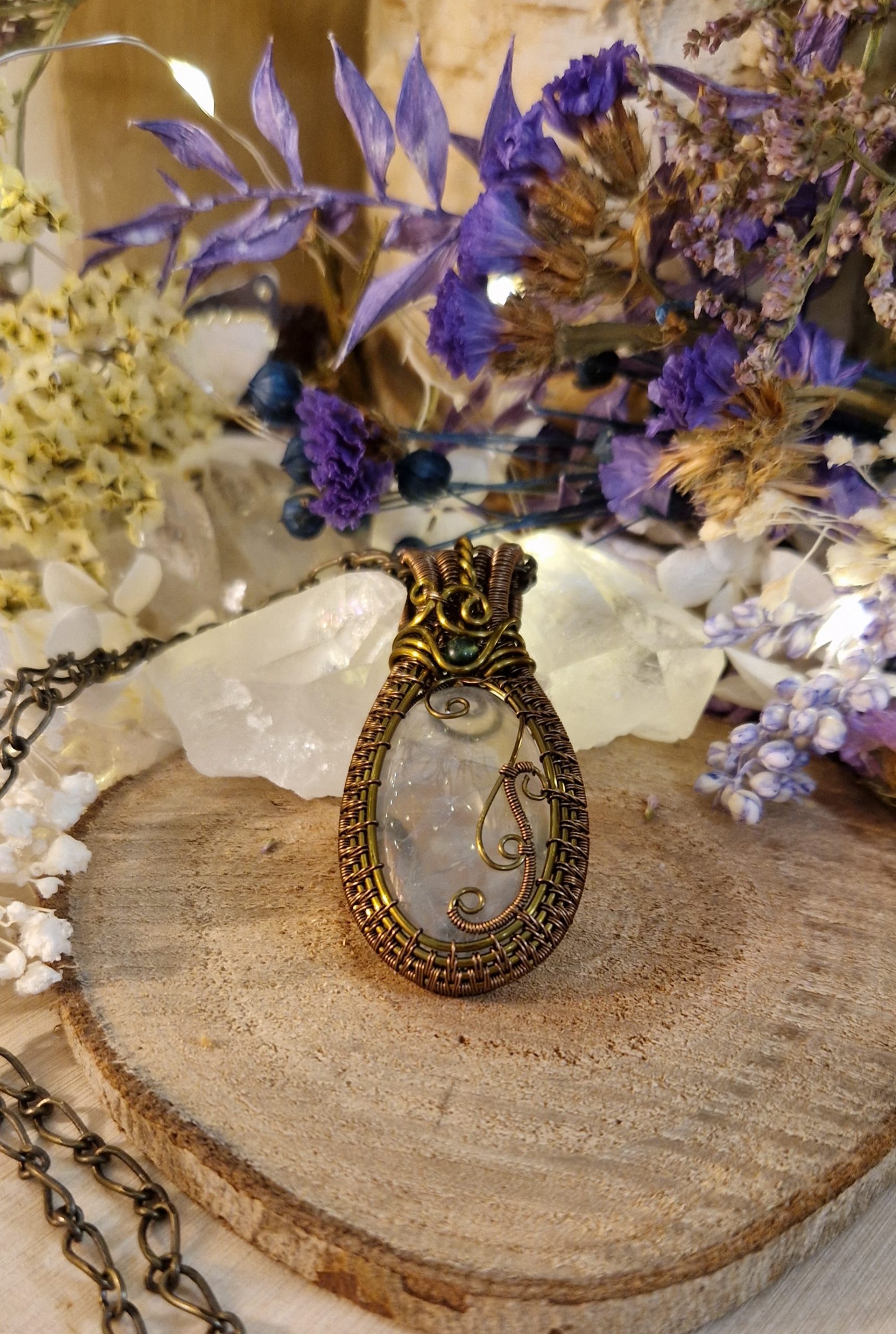 Laissez-vous envoûter par la majesté de ce grand pendentif artisanal en préhnite et enveloppez-vous de son éclat féerique! Inspiré par les légendaires amazones, ce collier de protection révèle toute sa puissance tel un bouclier magique qui vous guidera avec douceur sur le chemin de la sécurité et de l’harmonie.