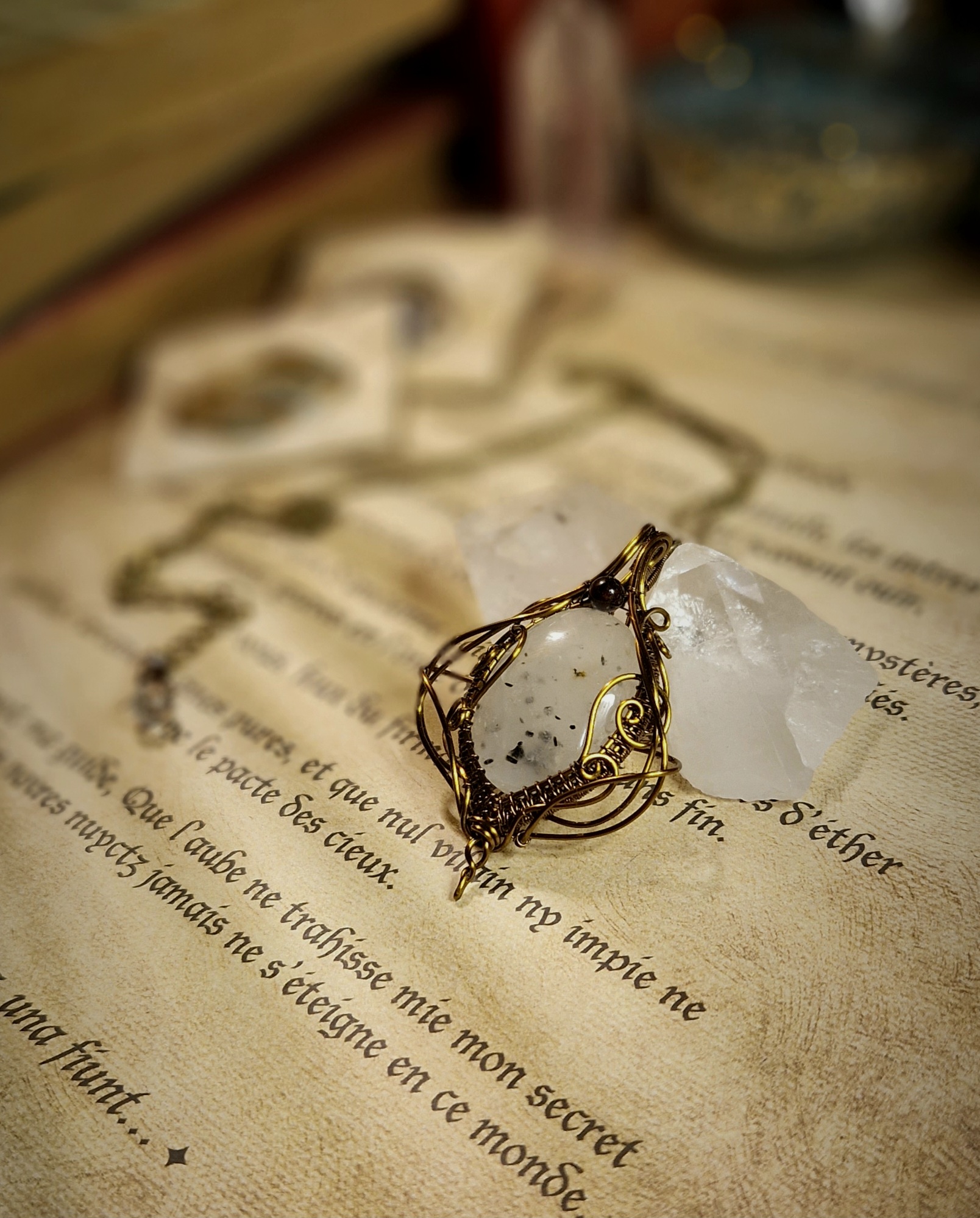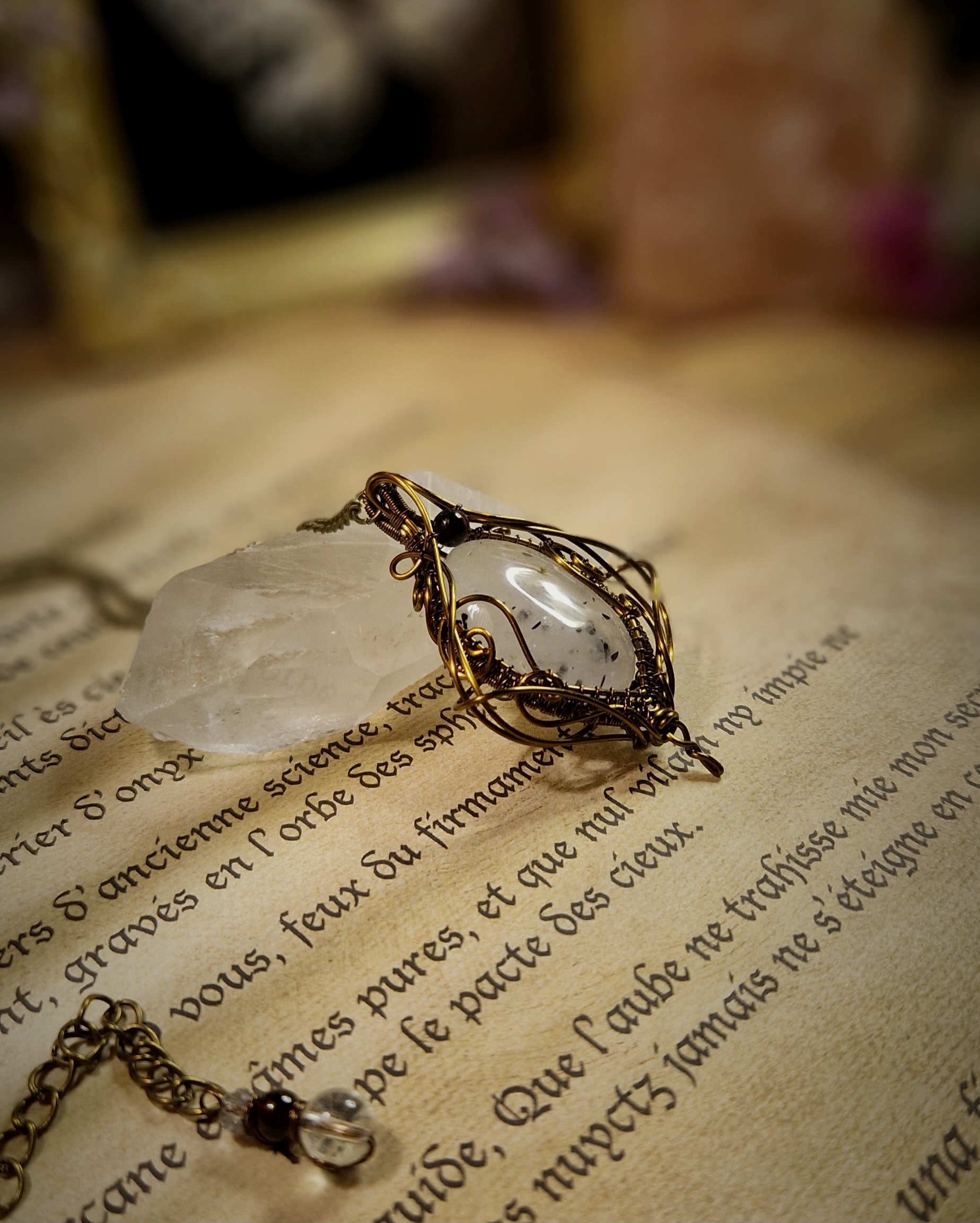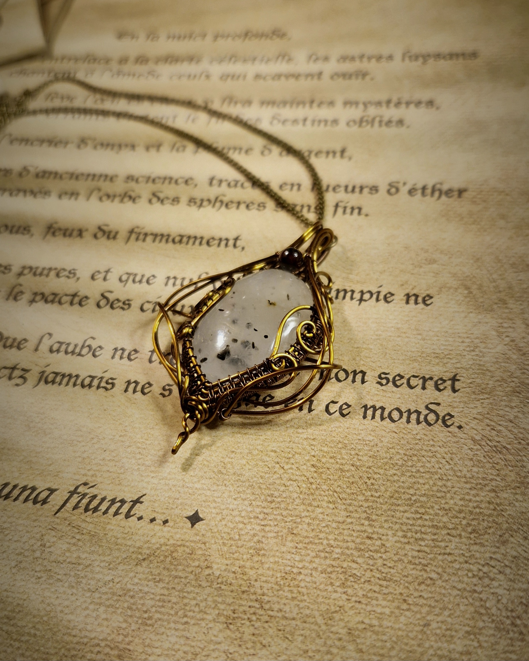 Cette technique ancestrale d’artisanat consiste à sertir différents supports (Pierres, gemmes, perles, etc…) à l’aide de fils de métal enroulés et/ou tissés de manières plus ou moins complexes, sans soudure ni colle. Cette méthode permet d’imaginer et de créer des pièces absolument uniques!